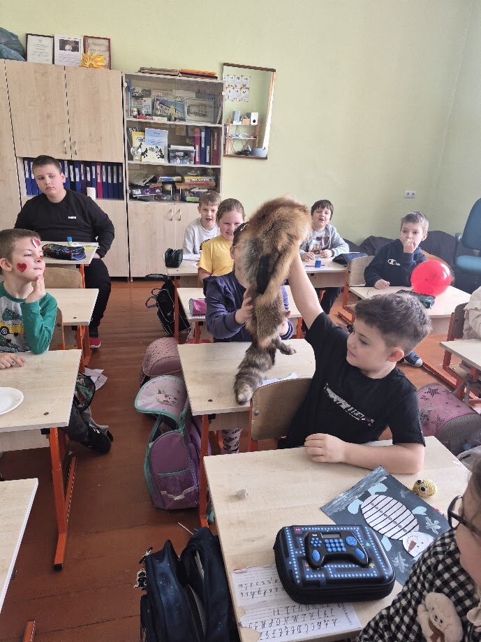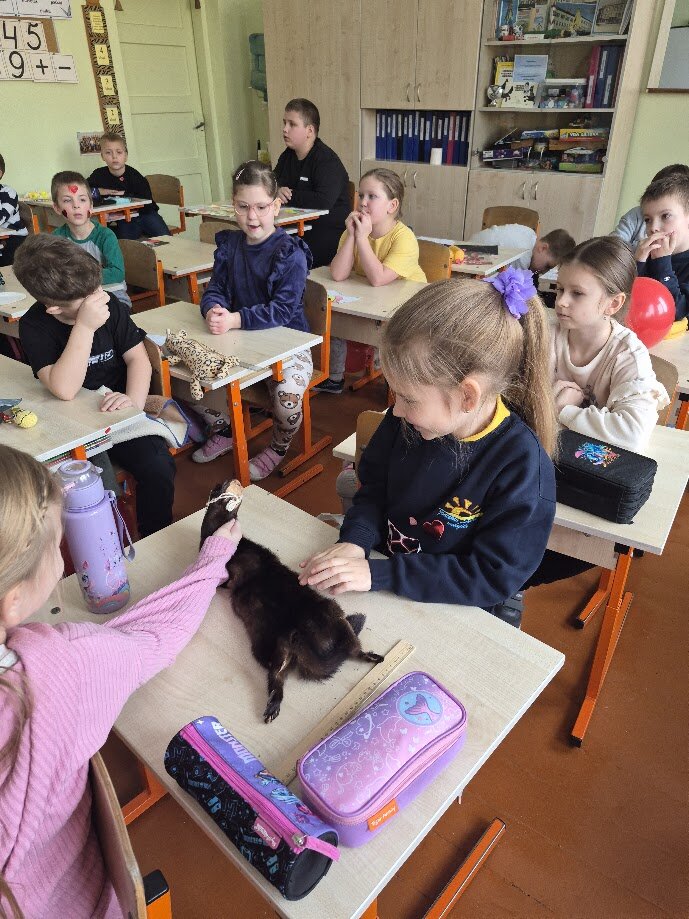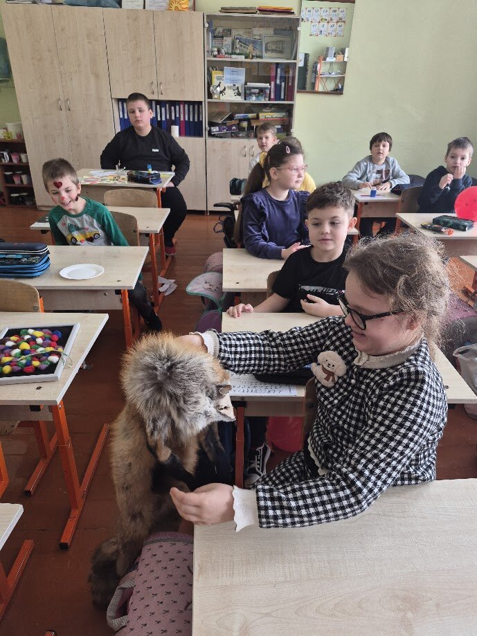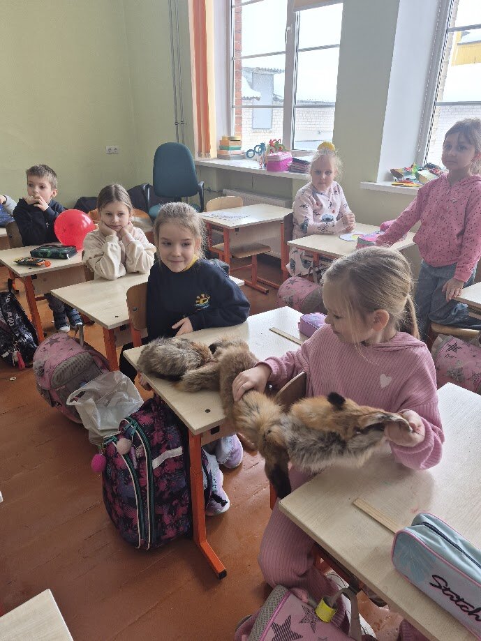 Netgi pademonstravo ir leido patiems paliesti tų žvėrelių kailius. Diskutavo ir aiškinosi su vaikais kaip ir kur gyvūnai praleidžia žiemą, kuo minta, kaip sunku jiems susirasti maisto, kai tokia atšiauri žiema kaip šiemet.