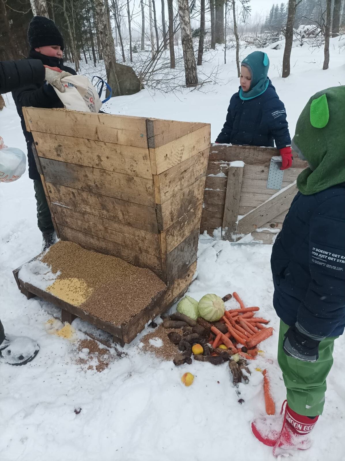 Po susitikimo perdavėme visą surinktą maistą ir pagamintas lesyklėles, kad nuvežtų gyvūnėliams į mišką.
