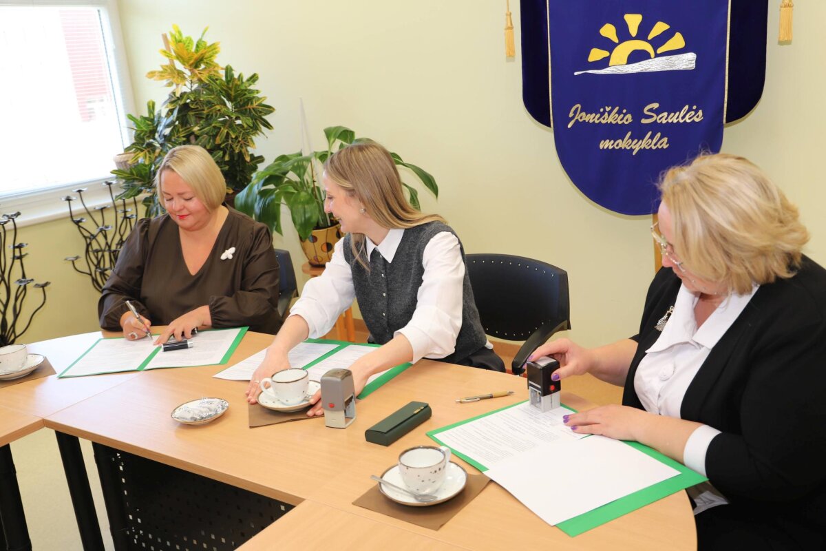 Žengtas svarbus žingsnis – šiandien Joniškio žemės ūkio mokyklos direktorė Juventa Jurgelienė, Joniškio ,,Saulės“ pagrindinės mokyklos direktorė Simona Jacienė ir Joniškio rajono švietimo centro direktorė Rasa Kelpšienė pasirašė trišalę bendradarbiavimo sutartį. Ji leis nuo šių metų rugsėjo 1-osios ,,Saulės“ pagrindinės mokyklos dešimtokams tikslingai pasirinkti profesinio mokymo programų modulį pagal pirminį profesinį mokymą. Be pamokų savo mokykloje dešimtokai turės galimybę per metus mokytis tam tikros profesinio mokymo programos ir įgyti darbo rinkai reikalingų įgūdžių.