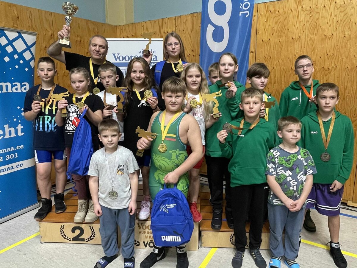 Nuotraukoje Joniškio jaunieji imtynininkai ir jų treneris Rytis Keršys po apdovanojimo.