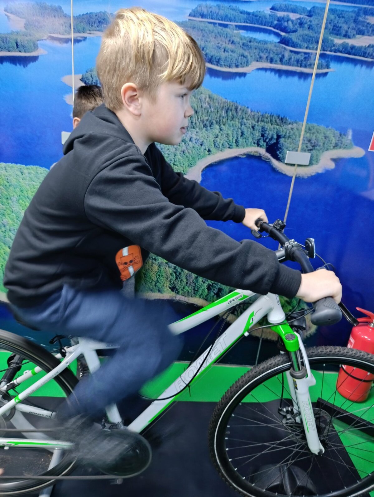 Vėliau nuvykome į Molėtų turizmo ir informacijos centrą, kur dalyvavome edukacijoje apie Molėtų praeitį. Smagu buvo išbandyti jėgas, minant virtualios realybės dviratį. Vaikai džiaugėsi galėdami žaisti 3D žaidimus.