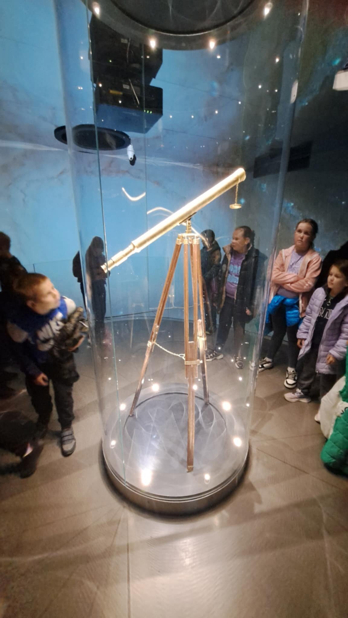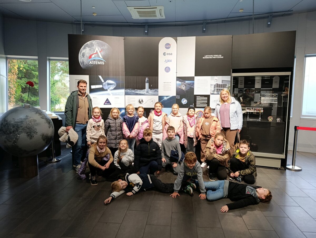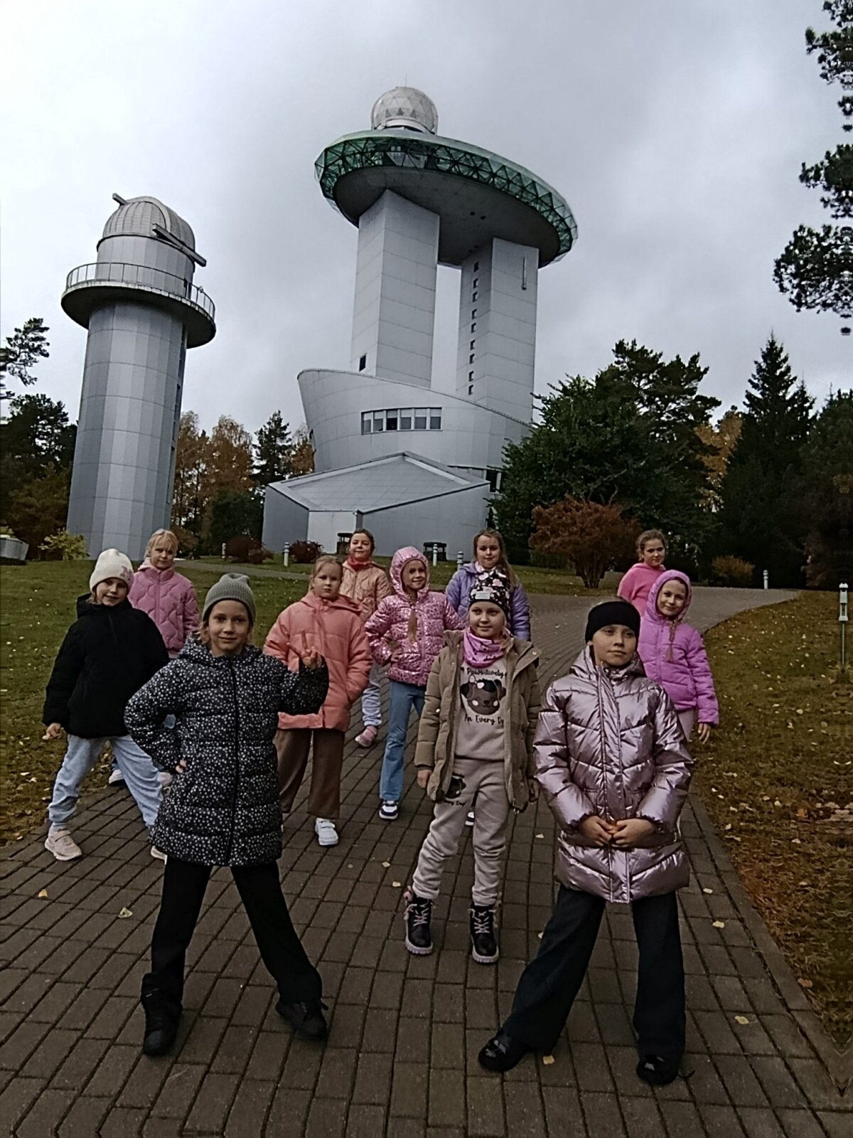 Ekskursija prasidėjo pažintimi su Molėtų etnokosmologijos muziejumi. Pagrindinis Lietuvos etnokosmologijos muziejaus uždavinys yra rinkti, kaupti, sisteminti, saugoti, moksliškai tyrinėti ir teikti lankytojams informaciją apie žmogaus ir žmonijos santykį su Kosminiu pasauliu. Muziejuje įrengta požeminė galerija su penkiomis salėmis, kuriose pateikiamos etnokosmologijos žinios. Mokiniams įdomiausi eksponatai buvo meteoritai, nukritę įvairiose pasaulio šalyse, taip pat iš Mėnulio pargabentas uolienos gabalas. O kiek įdomybių vaikai sužinojo apie kosmosą! Tai gali suprasti, tik apsilankę šiame muziejuje. Išėję į kiemą, galėjome susipažinti su Saulės sistemos planetų modeliais ir informacija apie juos.