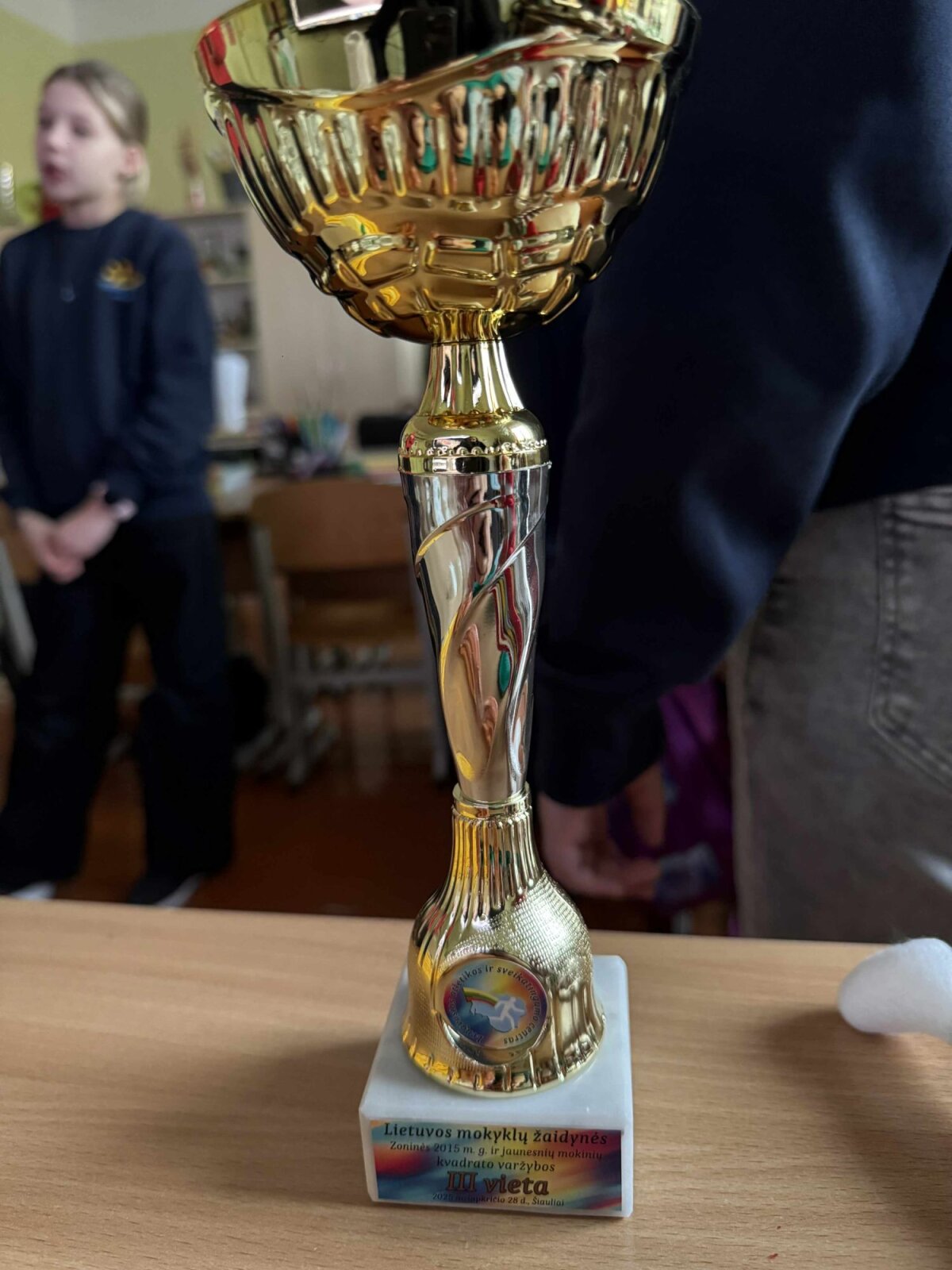 Lapkričio 28 dieną „Saulės“ ketvirtokų kvadrato komanda, su iškovotu pirmos vietos kelialapiu skubėjo į zonines varžybas, į Šiaulių Gegužių progimnaziją. Po įtemptų varžybų, prireikė trečio kėlinio, nusileidome šeimininkams. Dar varžėmės su Akmenės ketvirtokais. Nors labai gerai žaidėme, tačiau priešininkai buvo stipresni. Likome treti. Mūsų komandą apdovanojo trečios vietos diplomu, taure ir medaliais. Pasisėmėme patirties, išbandėme jėgas, sustiprinome tarpusavio pasitikėjimą ir komandinį žaidimą. Varžybų įtampą nuėmė apsilankymas McDonald‘s kavinėje. Grįžome linksmi ir laimingi.