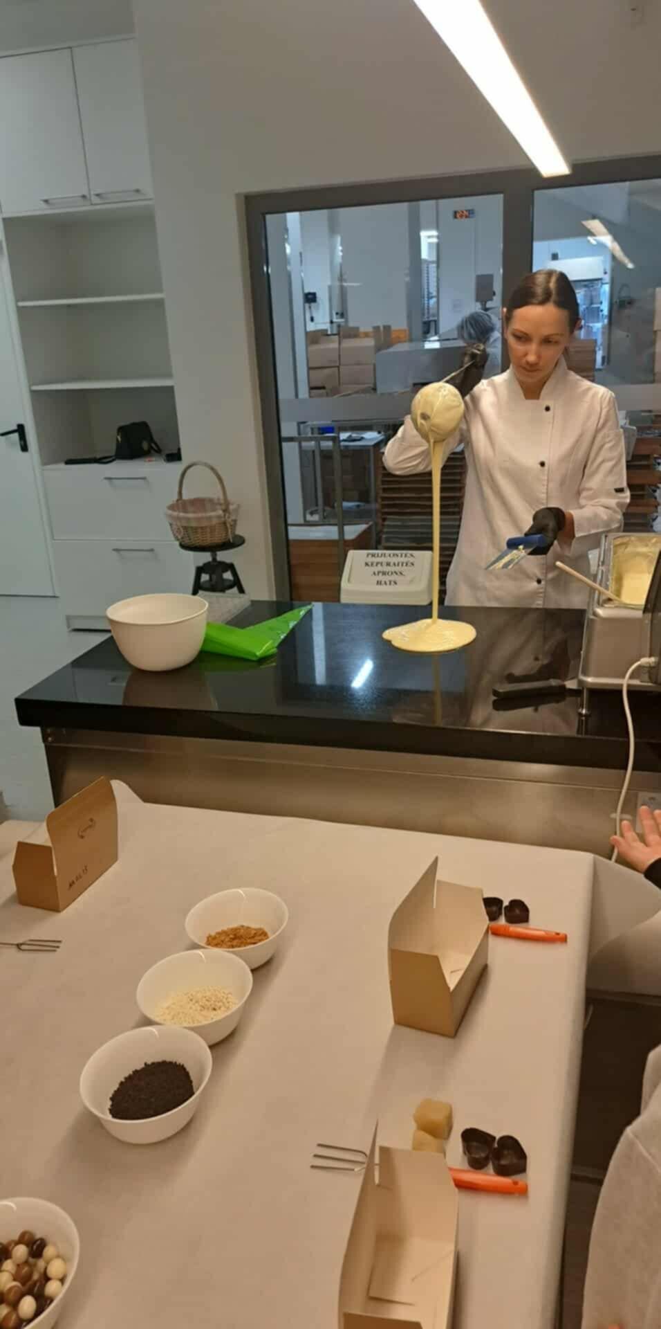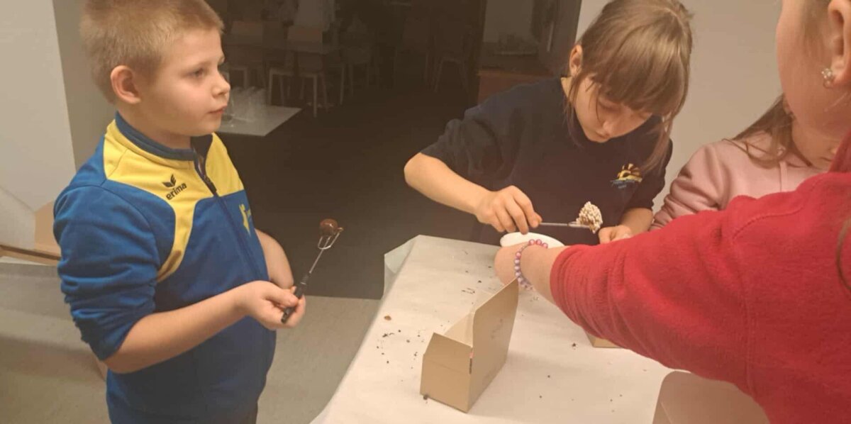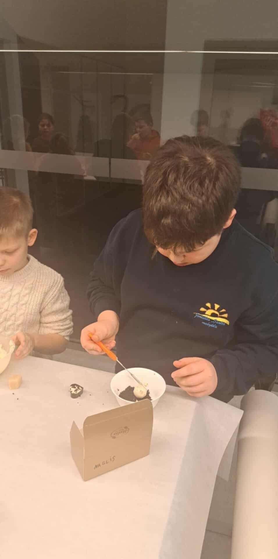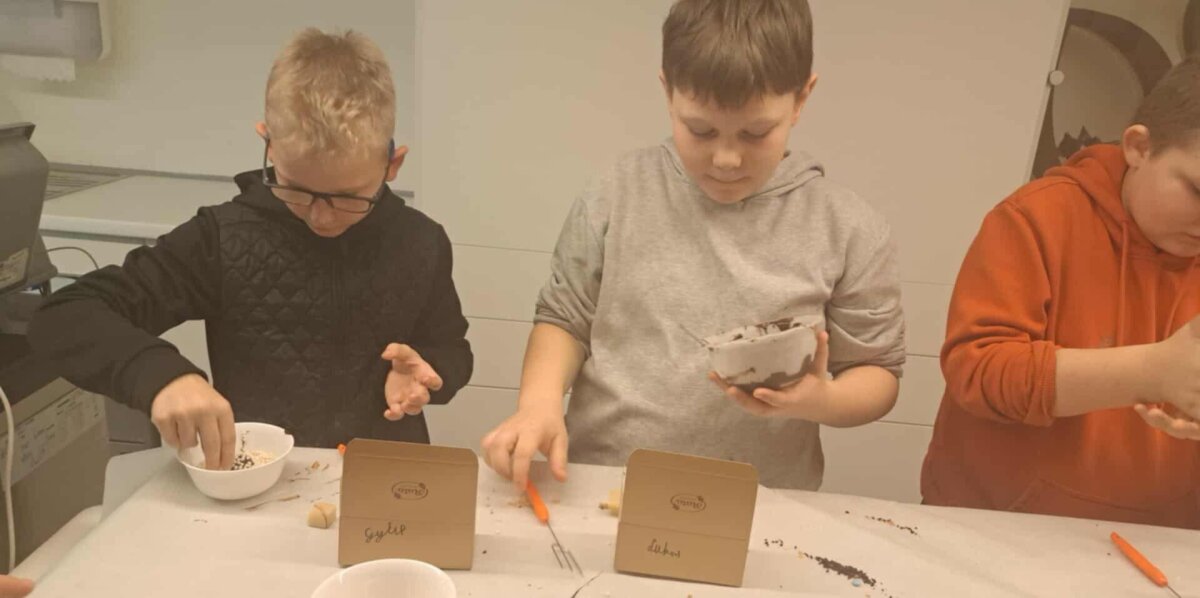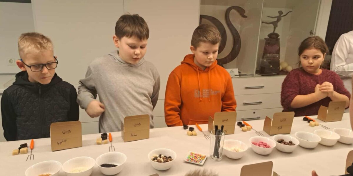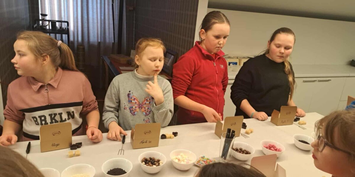 Paskutinę I pusmečio mokslo dieną 2B ir 3A klasių mokiniai su mokytojomis ugdymosi veiklas organizavo ne mokykloje. Sužinoję, kad sausio viduryje buvo pristatytas pirmasis Lietuvoje trimatės animacijos filmas, išsiruošėme jį pažiūrėti. Tai buvo Vytauto V. Landsbergio režisuotas filmas „Arklio Dominyko kelionė į žvaigždes“, sukurtas pagal jo paties prieš 20 metų parašytą knygą, kuri įtraukta į mokyklų programas, taip pat pelniusi Metų knygos apdovanojimus. Kaip smagu buvo mokytis vienybės, išminties ir meilės iš drąsiojo arklio Dominyko, kuris leidosi į kosminę kelionę ieškoti stebuklingo brangakmenio, galinčio nuo šalčio išgelbėti jo mylimąją Rugiagėlę! Supratę, kad sunkumus ir iššūkius galima įveikti tik susiradus draugų, skubėjome į saldainių fabriką „Rūta“. Čia mūsų laukė šokoladinių saldainių gaminimo edukacija ir ekskursija po vienintelį Lietuvoje šokolado muziejų. Muziejuje klausėmės istorijų, besitęsiančių daugiau kaip 4000 metų, apie šokolado gamybą! Taip pat ekspozicijoje išvydome didžiulį kakavmedį, kurį saugo actekų imperatorius Montesuma II. Kiekvienas vaikas galėjo išbandyti jėgas prie interaktyvaus žaidimų kompiuterio ir sudalyvauti viktorinoje apie šokolado istoriją bei sukurti savo saldainių popierėlį! Mažuosius tyrinėtojus sudomino nepaprasta siena su vaizdo dydį keičiančiais stiklais! Pro juos galima išvysti sumažintus didžiuosius fabriko įrenginius. O ekskursijos pabaigoje, patogiai įsitaisius, mūsų laukė filmukas apie šokolado „kelią“ į Lietuvą, „Rūtos“ istoriją ir saldainius, kuriuos tikriausiai valgė mūsų seneliai, proseneliai ir proproseneliai. „Šokolado dirbtuvėlės“ – štai, ko labiausiai laukė vaikai išvykoje! Laukė žinių apie šokoladinių saldainių gaminimo subtilybes ir galimybės pasigaminti jų savo rankomis! Paragavę ir pasimėgavę įvairiais šokolado skoniais, kibome į darbą – gaminome šokoladinius saldainius. Užsiėmimas ilgai neužtruko, norėjome čia likti dar ir dar, nes čia saldžiausia vieta visoje Šiaulių apskrityje!