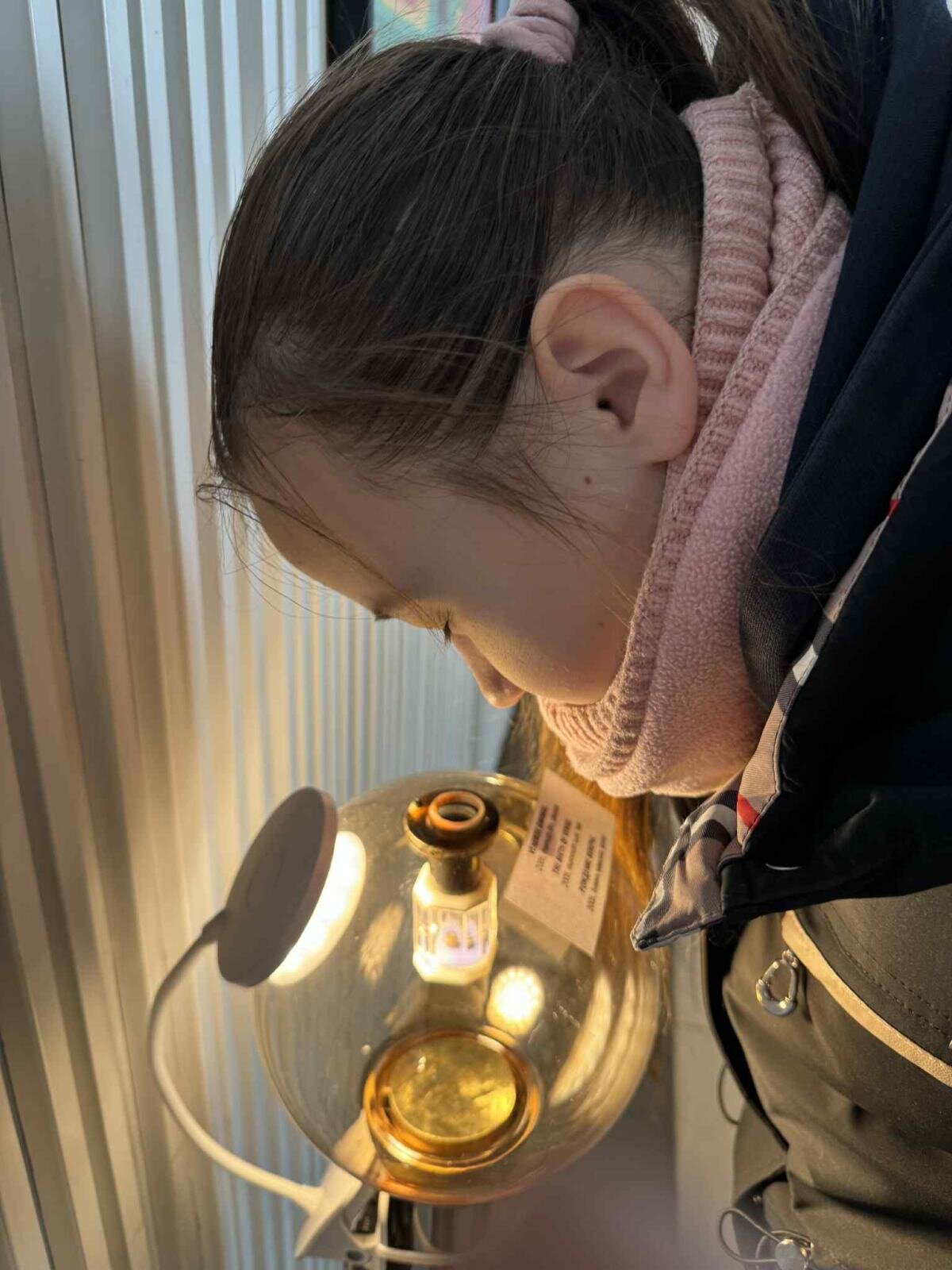 Iš tolo šviečia žybčiojančios švieselės prie įėjimo, visus pasitinka balti...