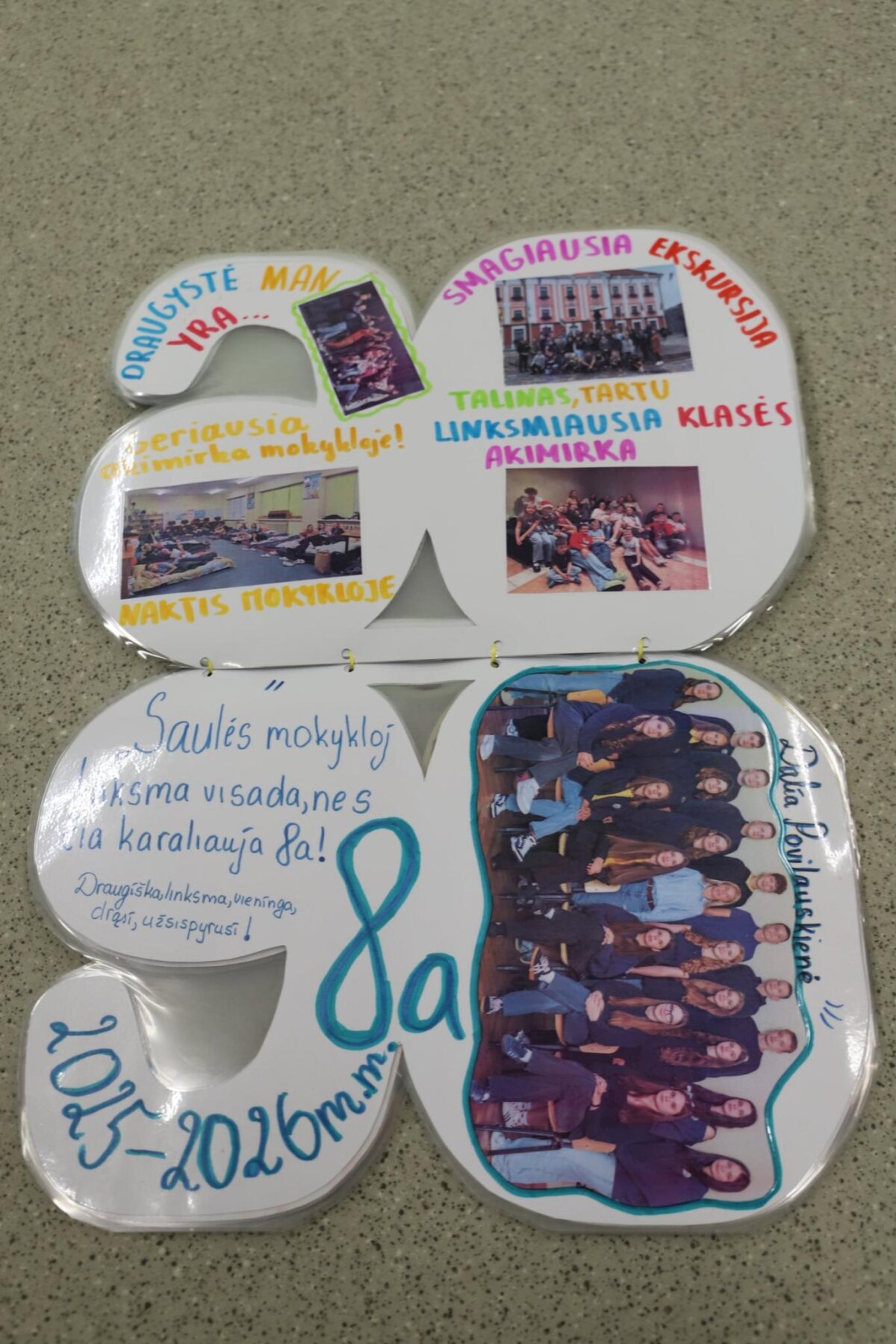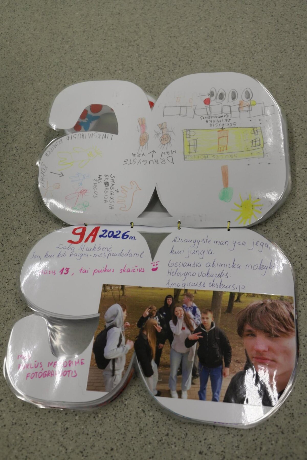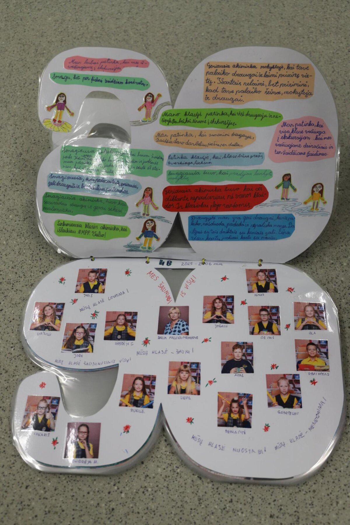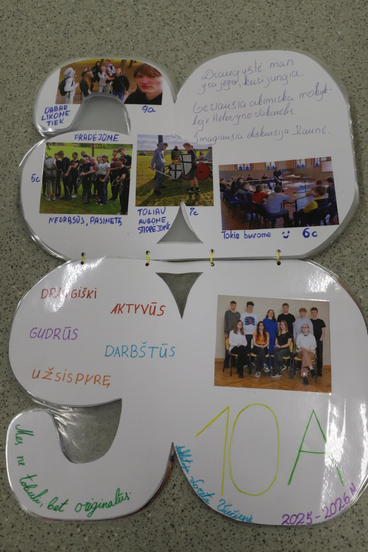 Visos klasės aktyviai įsitraukė į kūrybinį procesą: pristatė savo klases, kūrė šūkius, dalijosi mintimis apie draugystę bei prisiminė gražiausias mokyklos akimirkas. Knygos puslapiai buvo papuošti piešiniais, nuotraukomis ir spalvingomis miniatiūromis, todėl kiekvienas jų tapo unikaliu mūsų bendruomenės istorijos puslapiu.