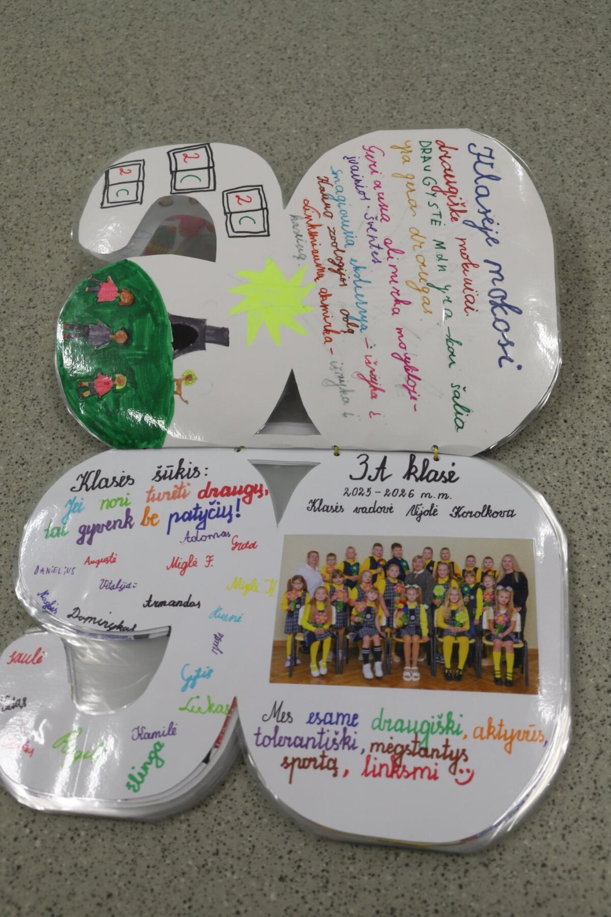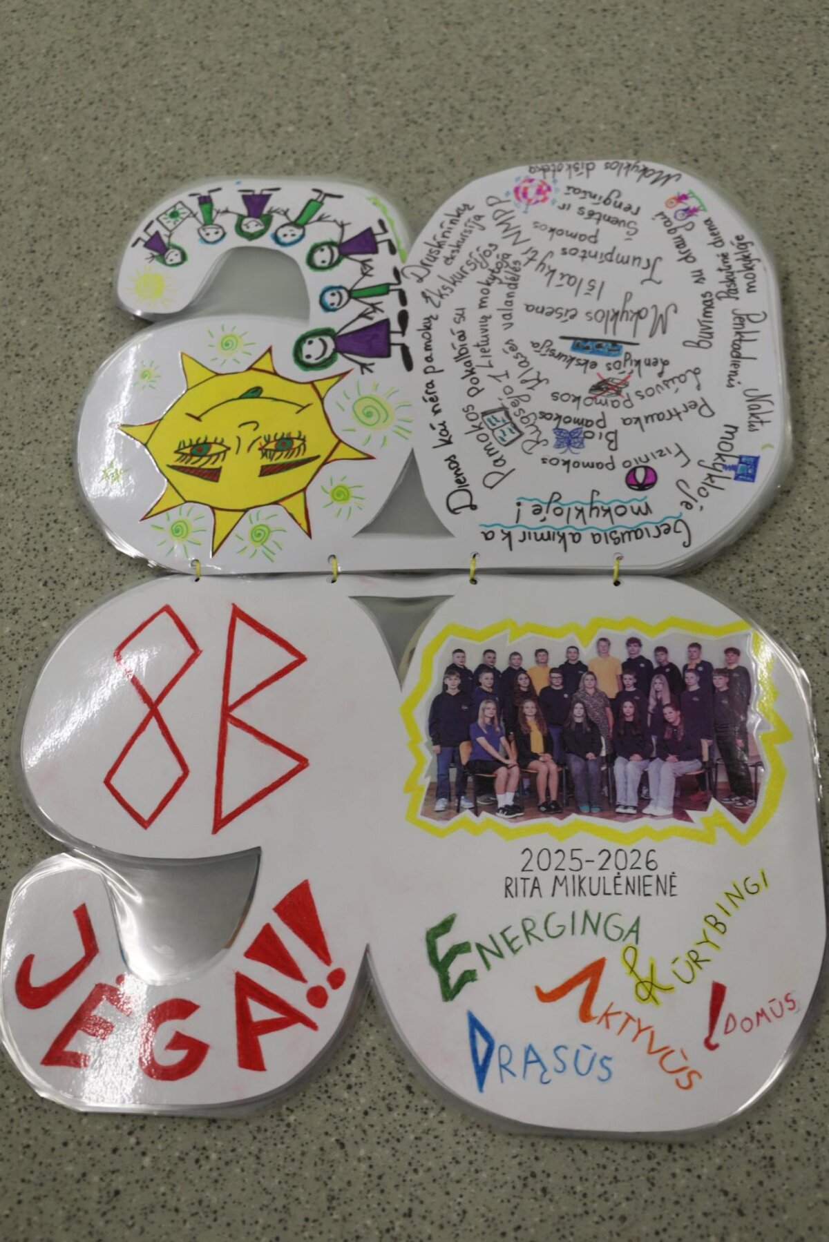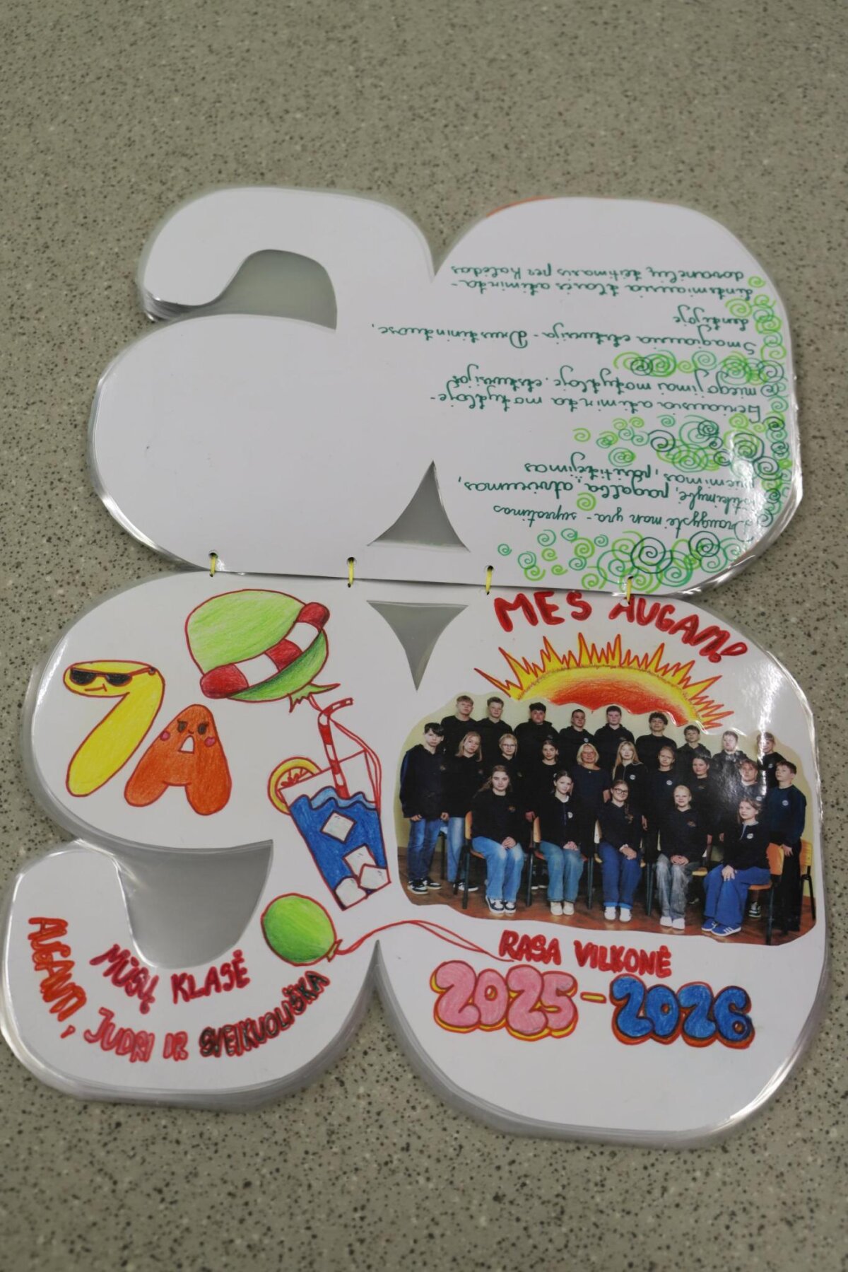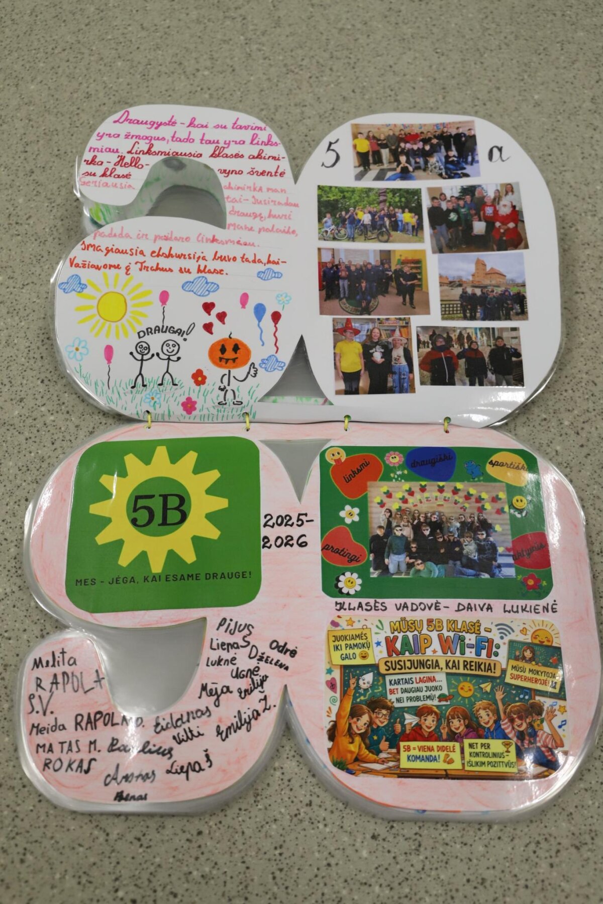 Visos klasės aktyviai įsitraukė į kūrybinį procesą: pristatė savo klases, kūrė šūkius, dalijosi mintimis apie draugystę bei prisiminė gražiausias mokyklos akimirkas. Knygos puslapiai buvo papuošti piešiniais, nuotraukomis ir spalvingomis miniatiūromis, todėl kiekvienas jų tapo unikaliu mūsų bendruomenės istorijos puslapiu.