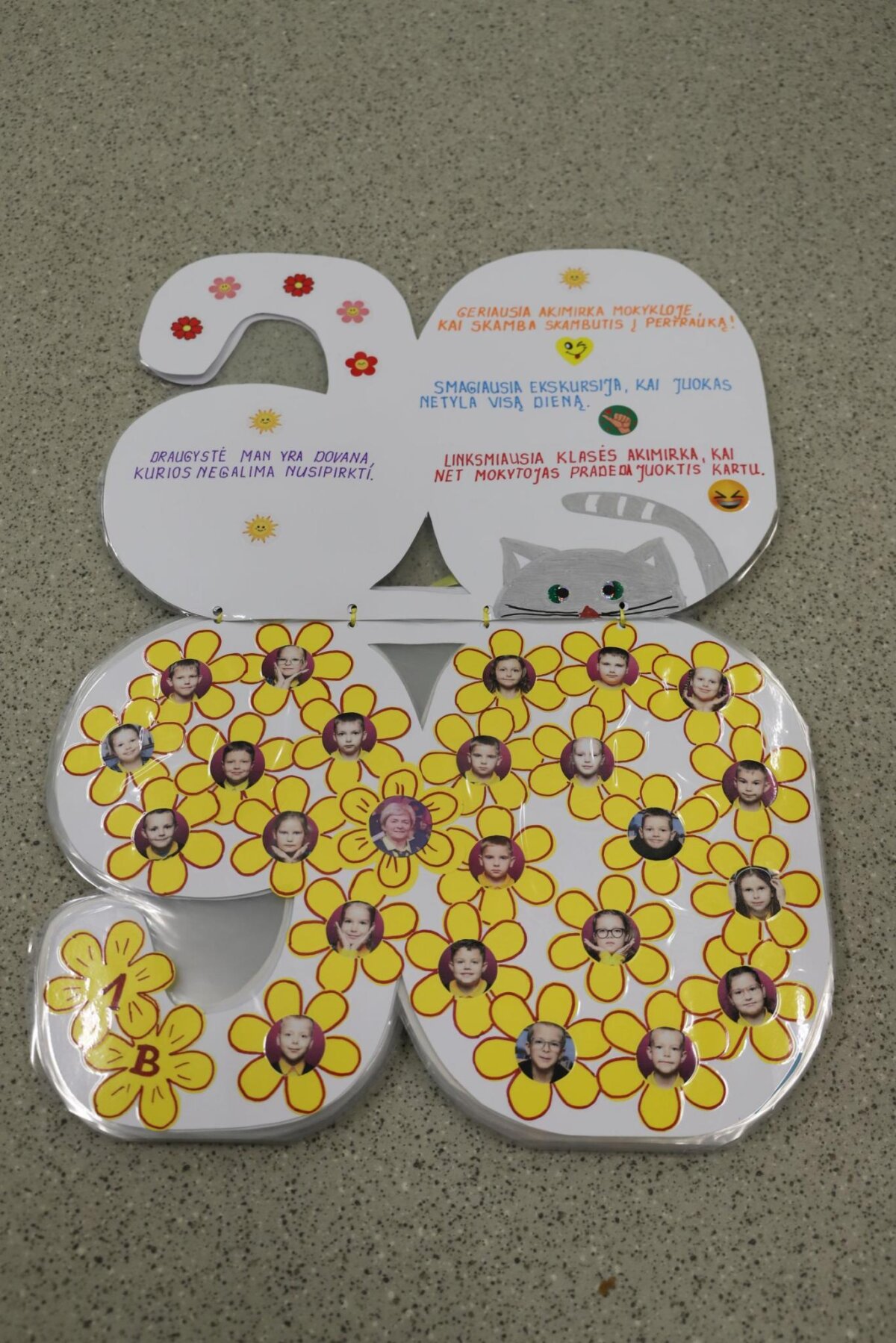 Mokyklos foje atidaryta 1A ir 1B klasių mokinių paroda, skirta pirmokų šimtadien... -