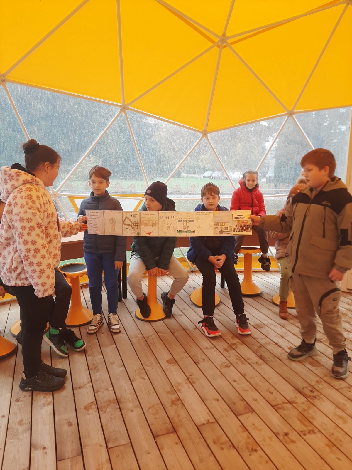 Ketvirtokai papasakojo, kaip atsirado Skaistgirio kaimas, kuo jis garsus ir kiek mokinių mokosi jų gimnazijoje. Buvo įdomu klausytis jų pasakojimų ir sužinoti, kad čia gyvena daug kūrybingų ir darbščių žmonių.