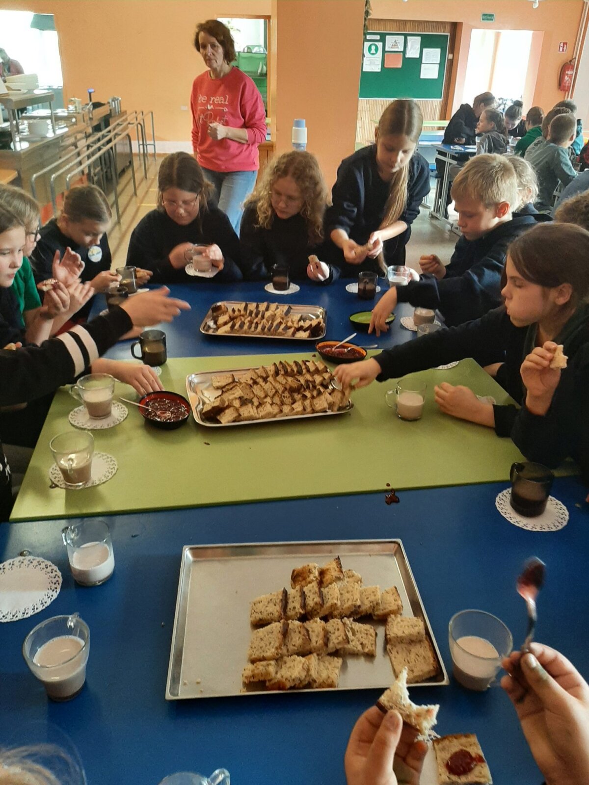 Vėliau visi kartu žaidėme kvadratą, piešėme, dainavome. Visur tvyrojo džiaugsmas ir juokas. Po smagių veiklų mūsų laukė staigmena – vaišės! Ragavome pačių ketvirtokų iškeptos sveikuoliškos duonelės su mokytojos gaminta uogiene ir kvapniu medumi. Buvo labai gardu!