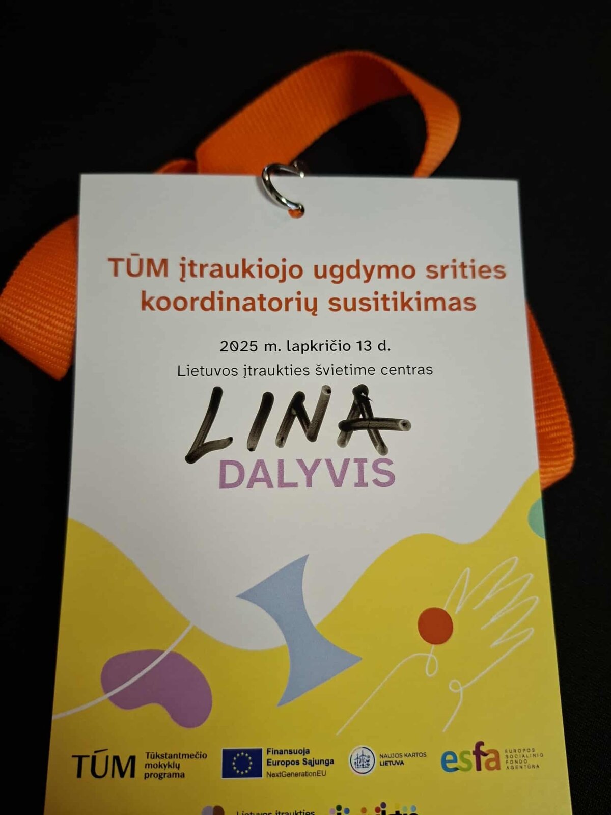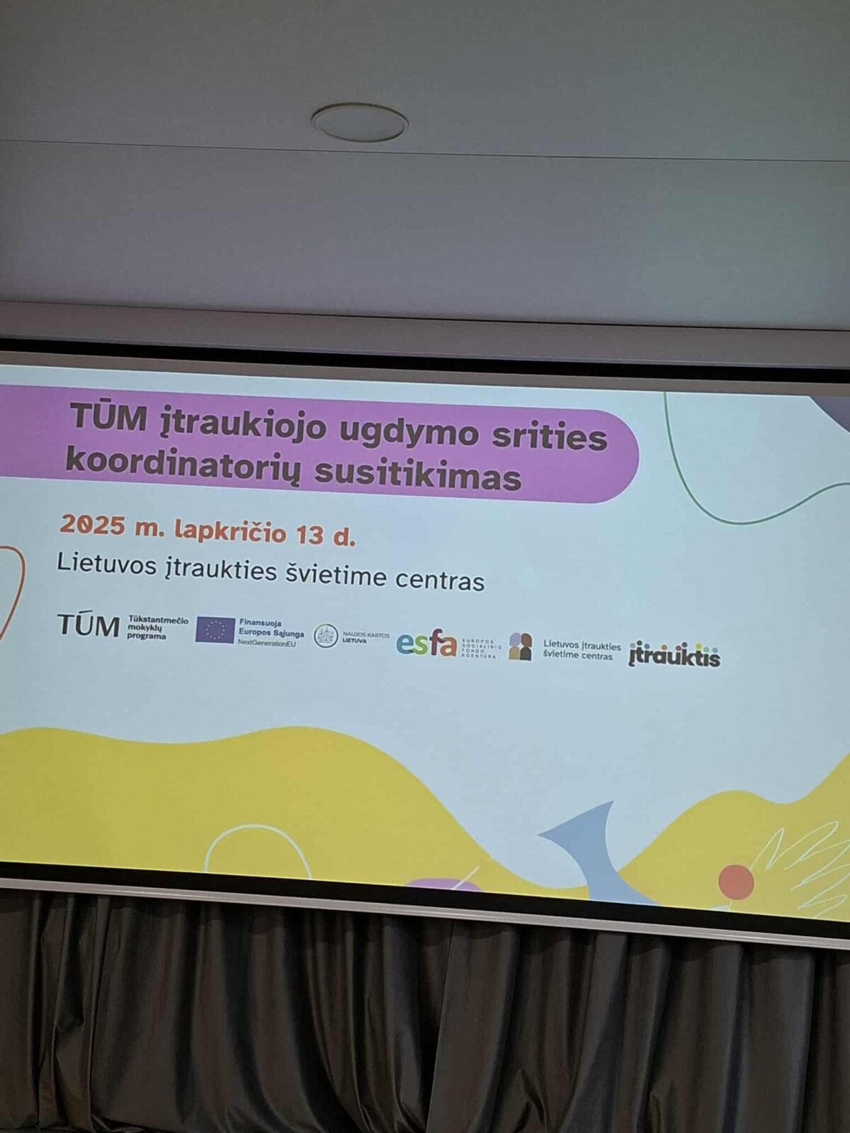 Lapkričio 13 d. praleista Lietuvos įtraukties švietime centre, Vilniuje su TŪM įtraukiojo ugdymo srities koordinatoriais. Diena, skirta įtraukties švietime temoms ir praktiniam mokymuisi.