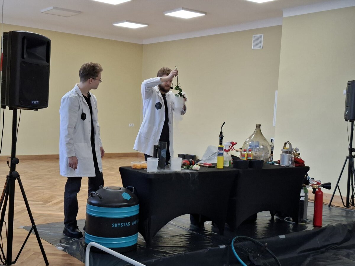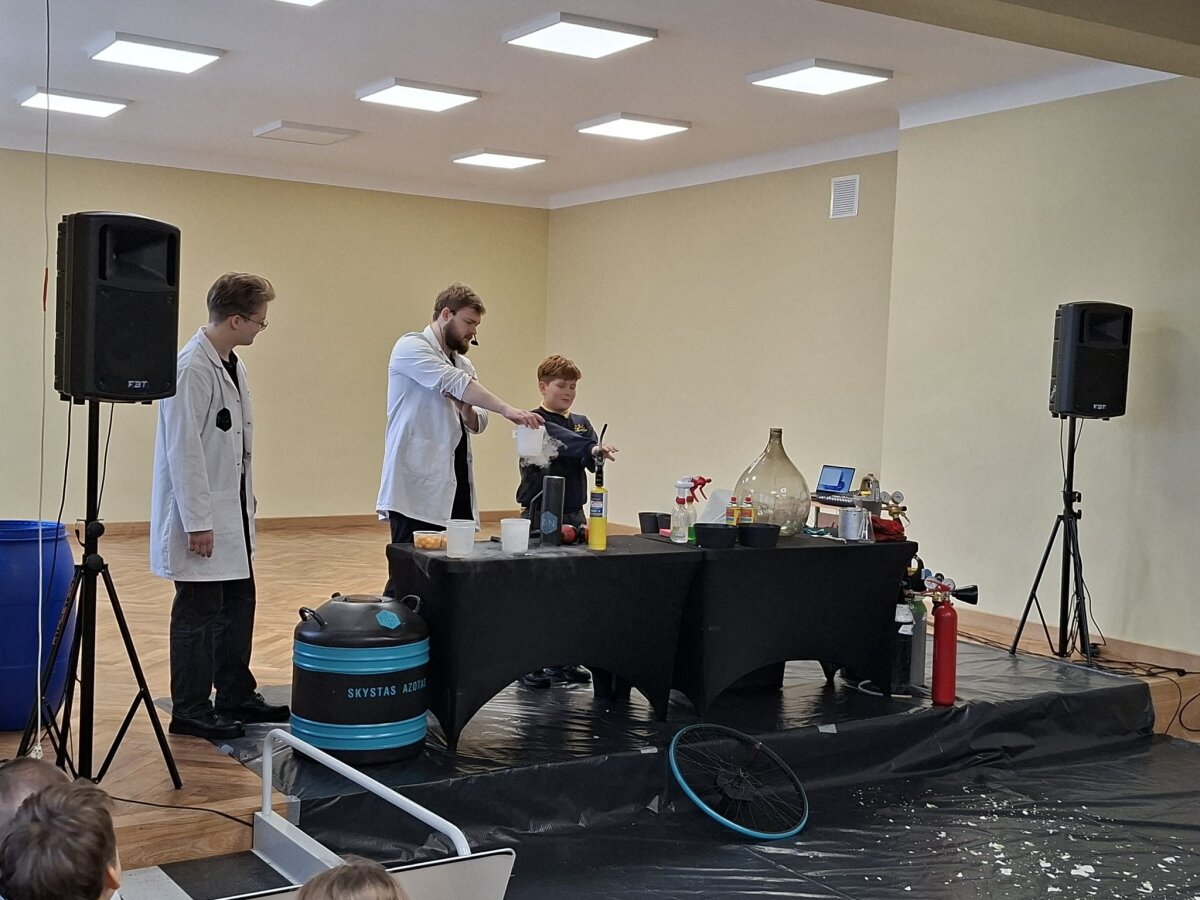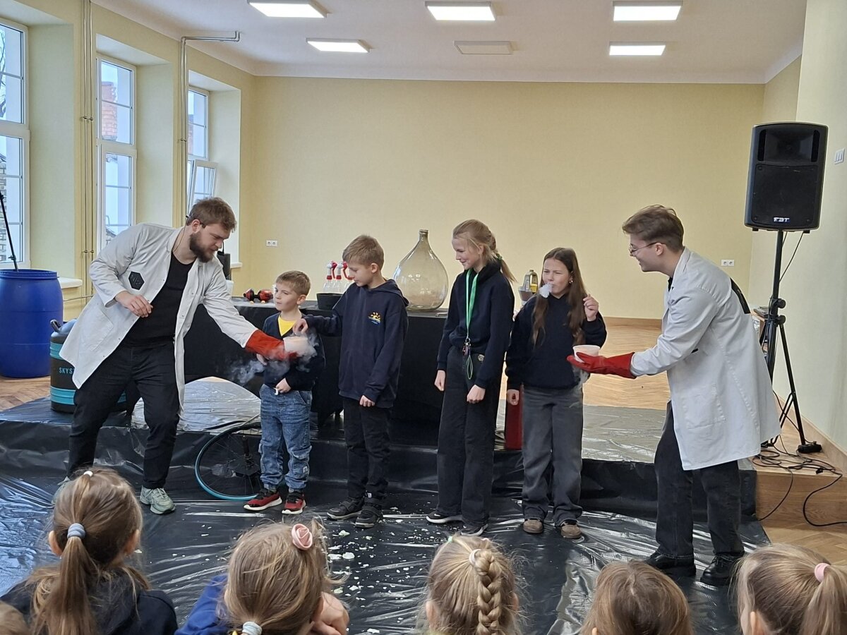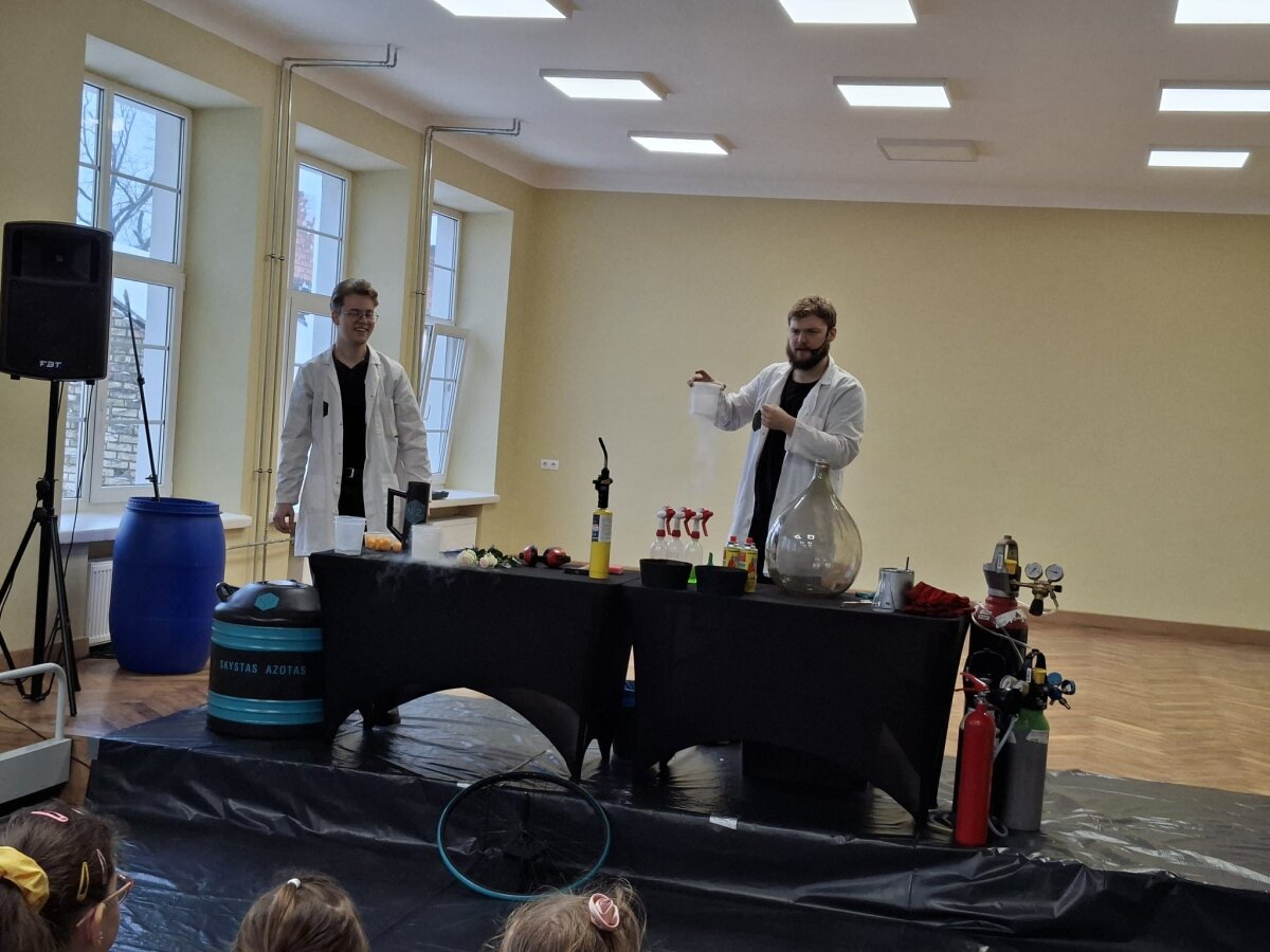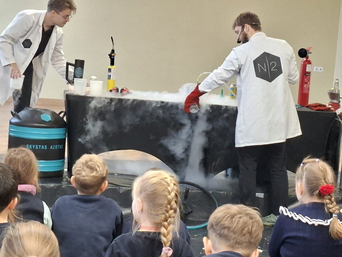 1-4 klasių ir Specialiojo ugdymo skyriaus mokiniai dalyvavo edukacijoje „Sprogimai ir padavimai“. Tai meninis ir mokslinis performansas apie neįmanomas užduotis tautosakoje ir literatūroje. Pasinaudodami mokslu ir įtraukdami moksleivius, N2 komanda įgyvendino “neįmanomas” įvairių tautų literatūroje sutinkamas magines užduotis – gyvai! Audringų mokslinių demonstracijų, animacijų, šviesų ir šmaikštaus įgarsinimo pagalba mokiniai pasinėrė į stebuklines pasakas ir mitus, kurie pateikti nauja, įtraukia forma.