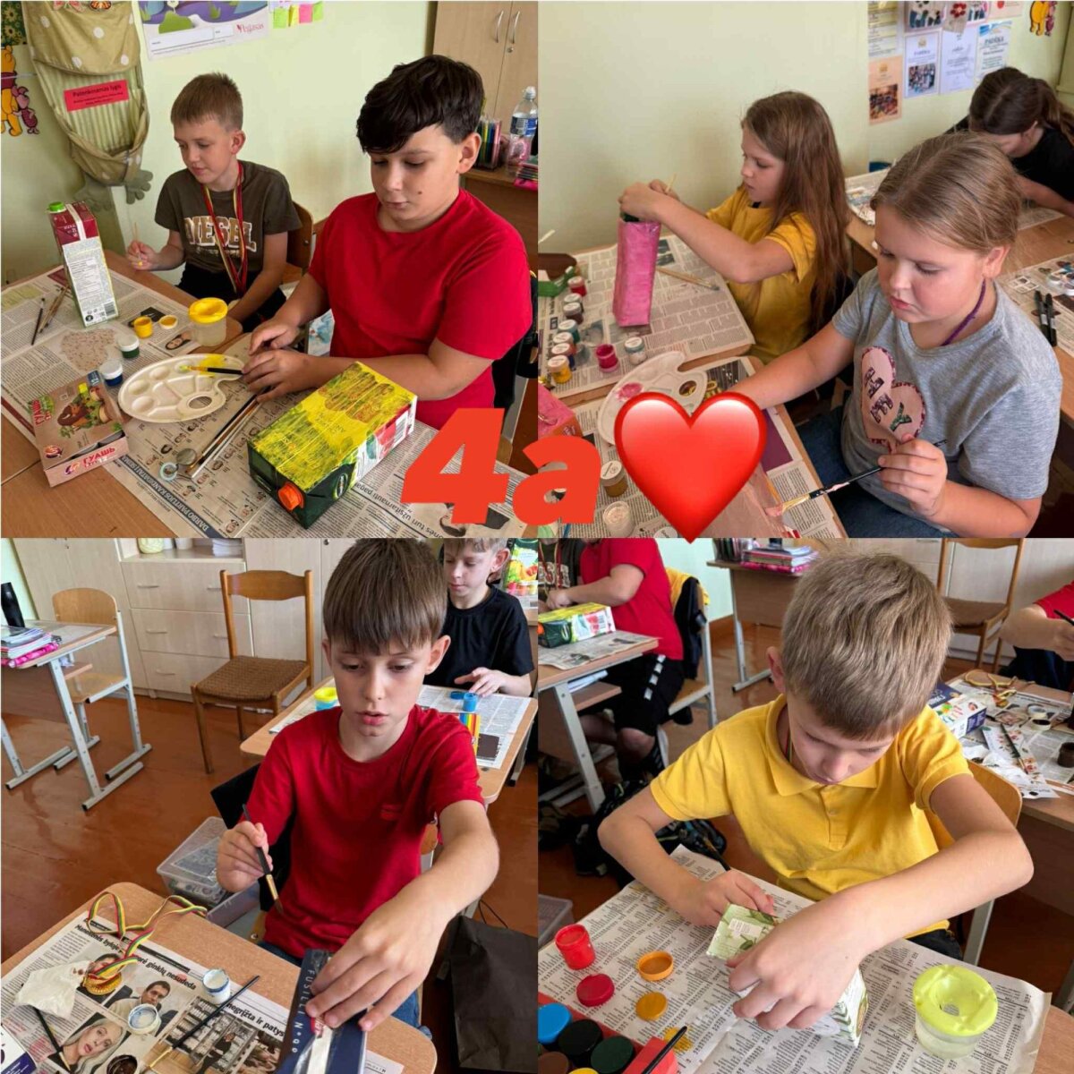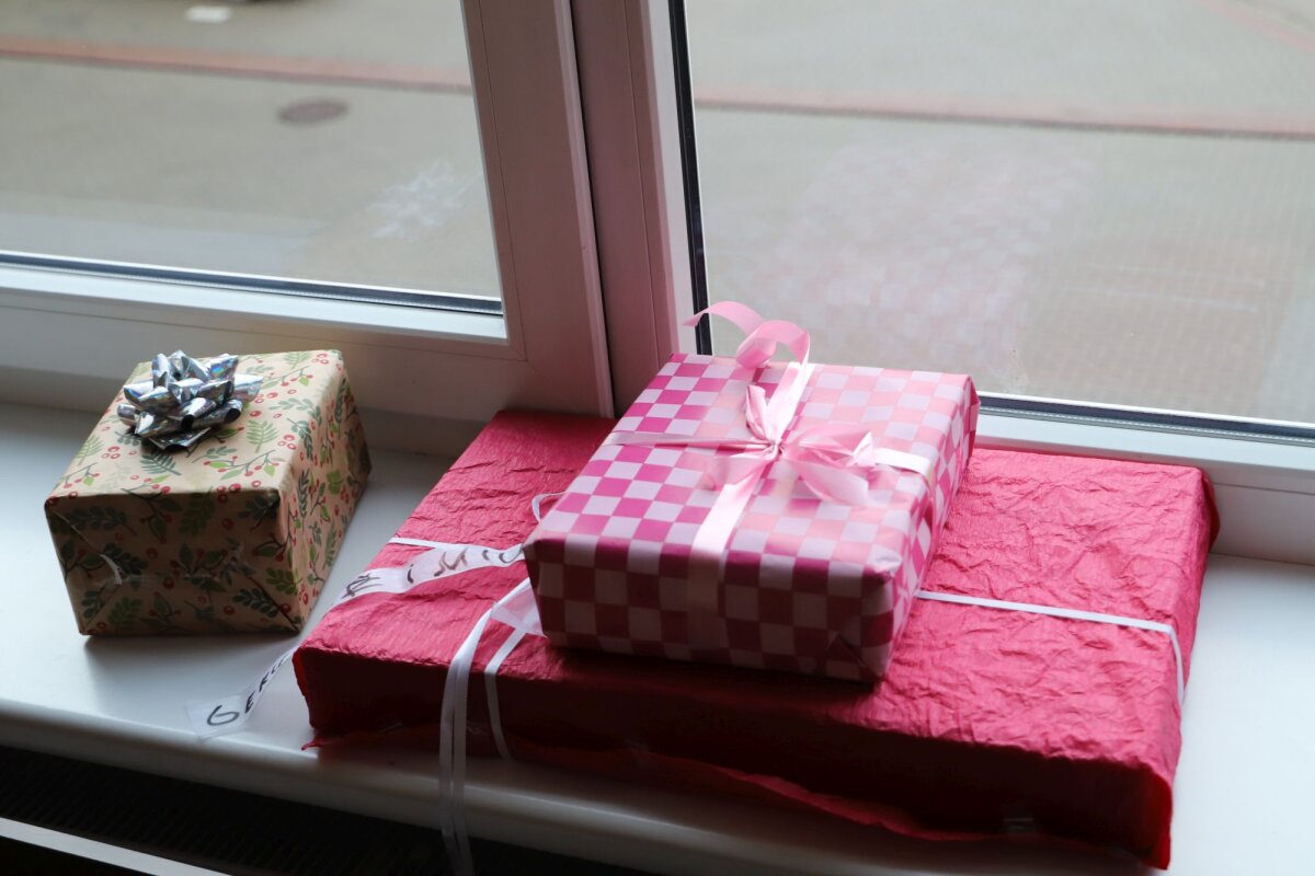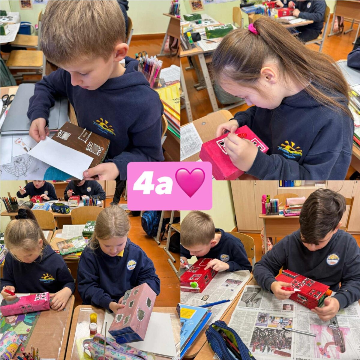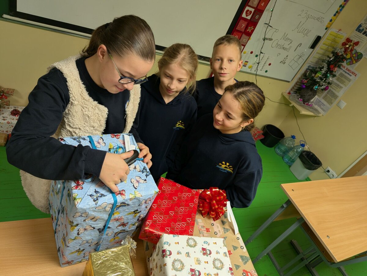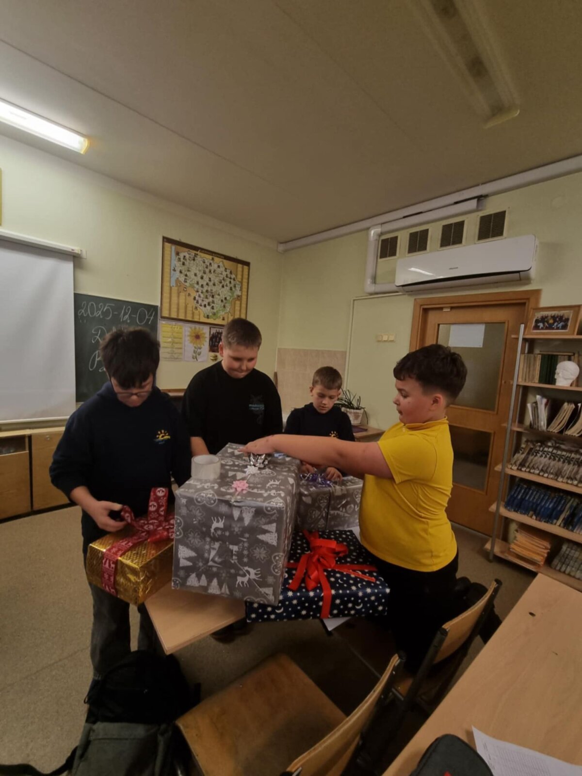 5-10 kl. ir SUS mokiniai gamino kalėdines stačiakampio formos dėžutes, jas puošė dovanų popieriumi ir užrašė linkėjimus savo mokyklai. Kalėdinėmis dovanų dėžutėmis papuošta mokyklos išorė ir vidus.