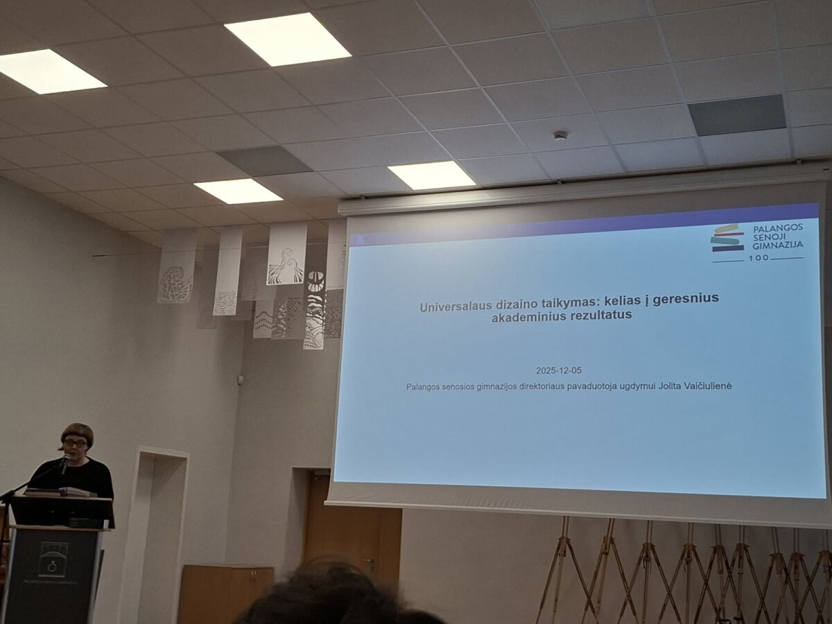 11.30-11.50 val. Universalaus dizaino principų taikymas siekiant akademinių tikslų. Palangos senosios gimnazijos patirtys. Palangos senosios gimnazijos direktoriaus pavaduotoja ugdymui Jolita Vaičiulienė.