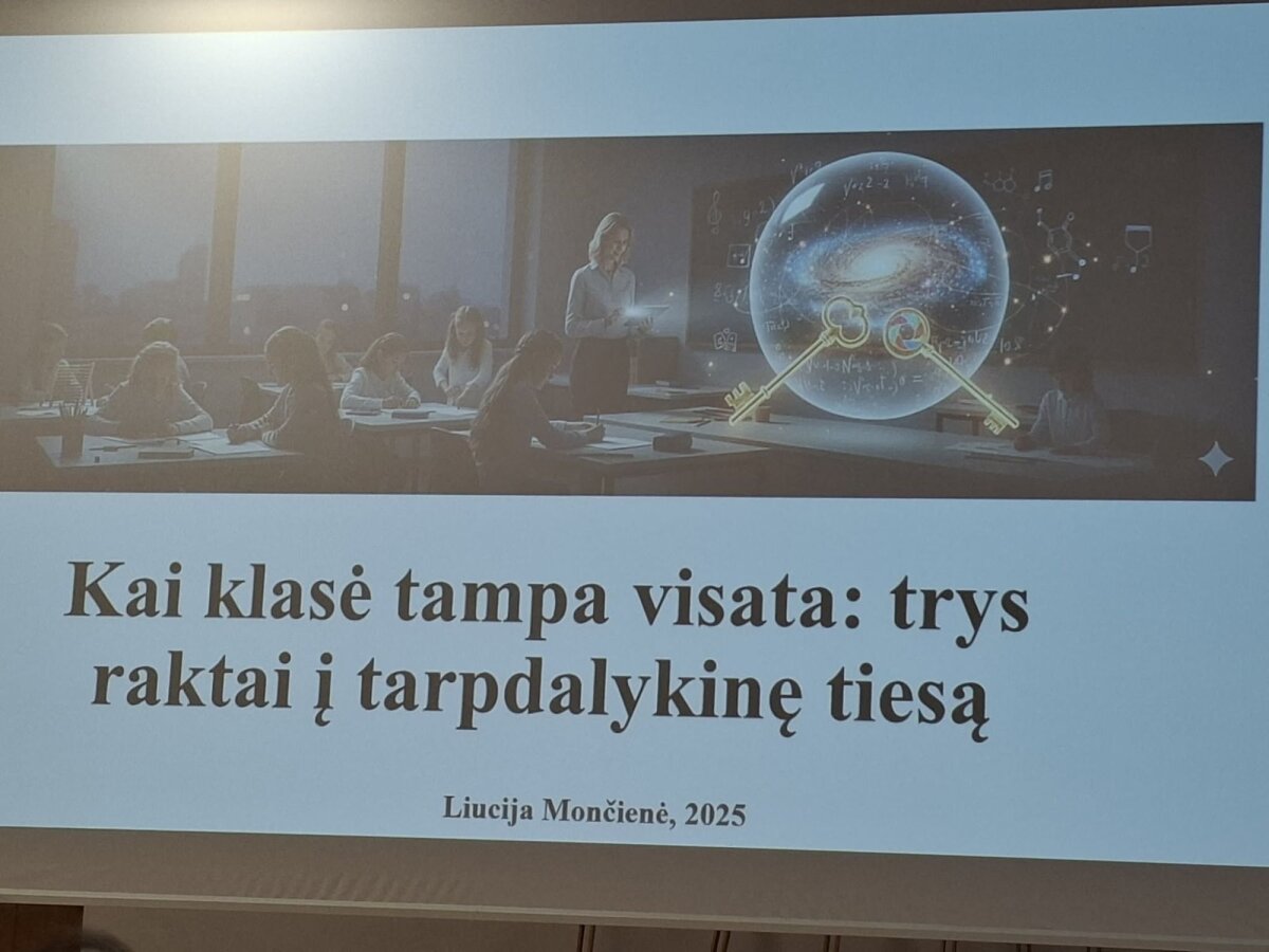 12.10-12.30 val. Kai klasė tampa visata: trys raktai į tarpdalykinę Tiesą. Palangos senosios gimnazijos fizikos mokytoja ekspertė Liucija Mončienė.
