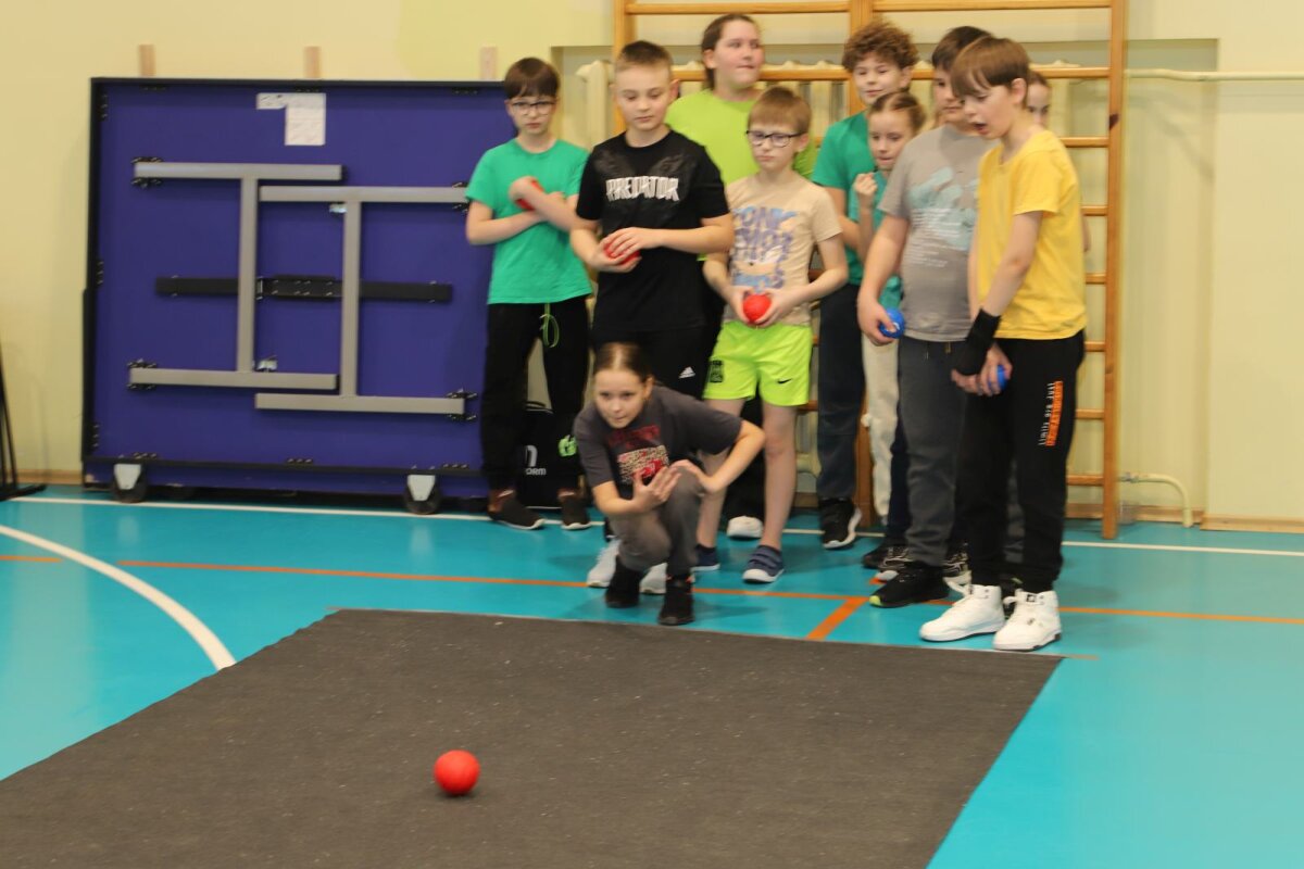 „Bočios“ žaidimas, mažojoje sporto salėje, mokytojas A. Gecevičius