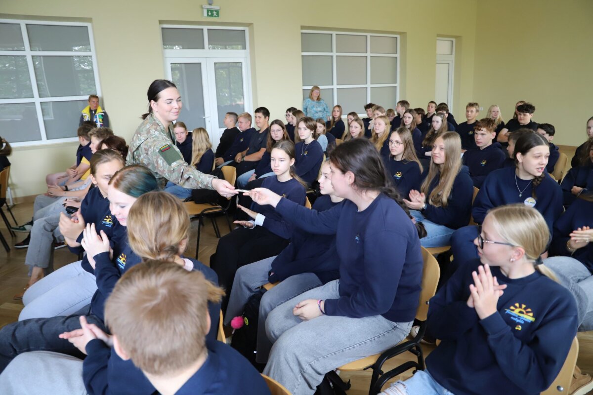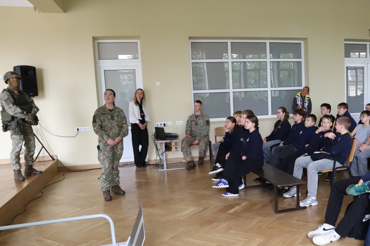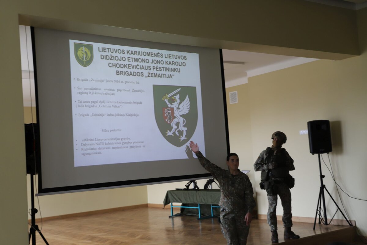 Kariai supažindino mokinius su Lietuvos kariuomene, Lietuvos didžiojo etmono Jono Karolio Chodkevičiaus pėstininkų brigada „Žemaitija“, jos misija, vertybėmis bei galimybėmis, kurias gali atrasti jauni žmonės.