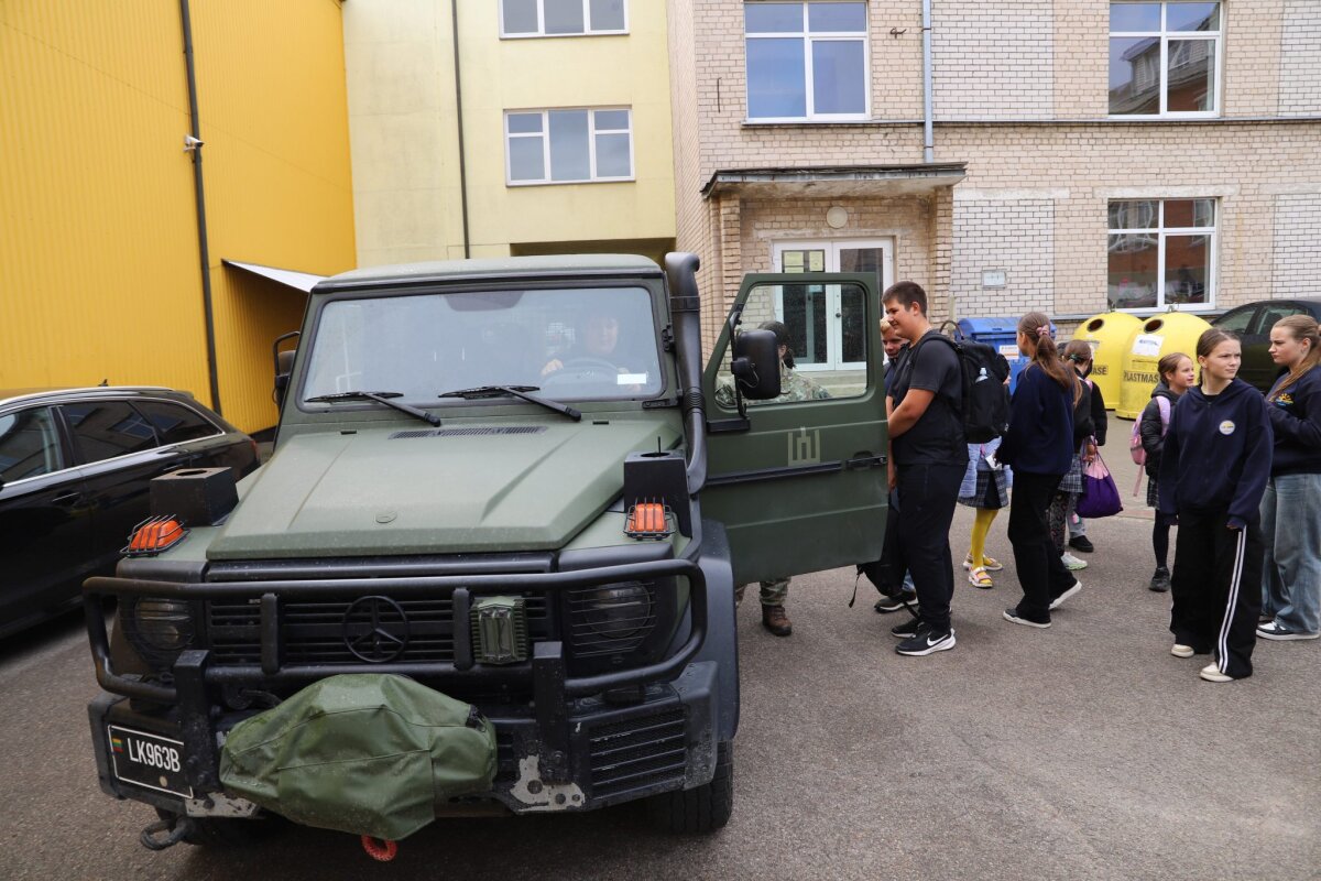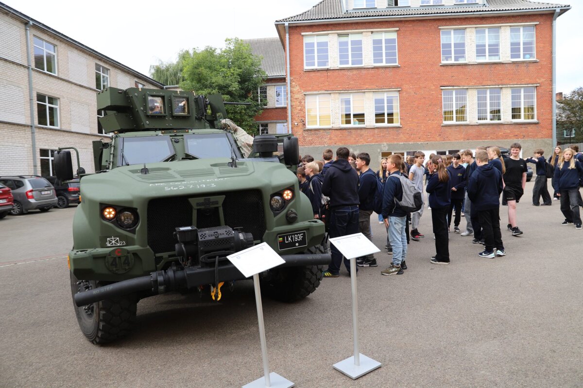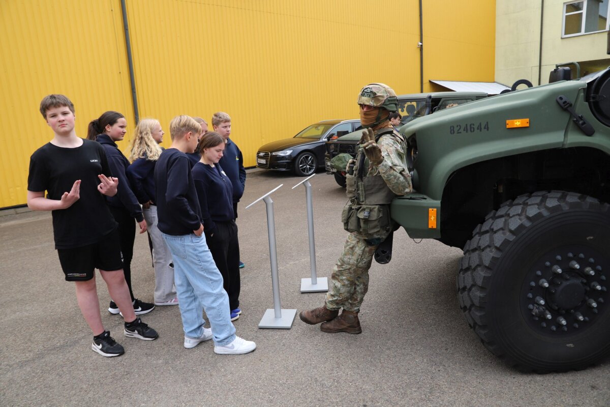 Mokiniai ne tik išgirdo įkvepiančią Salaspilio mūšio istoriją, bet ir iš arčiau pažino bataliono gyvenimą, apžiūrėjo ginkluotę, matavosi ekipuotę, galėjo pasėdėti kariniame transporte.