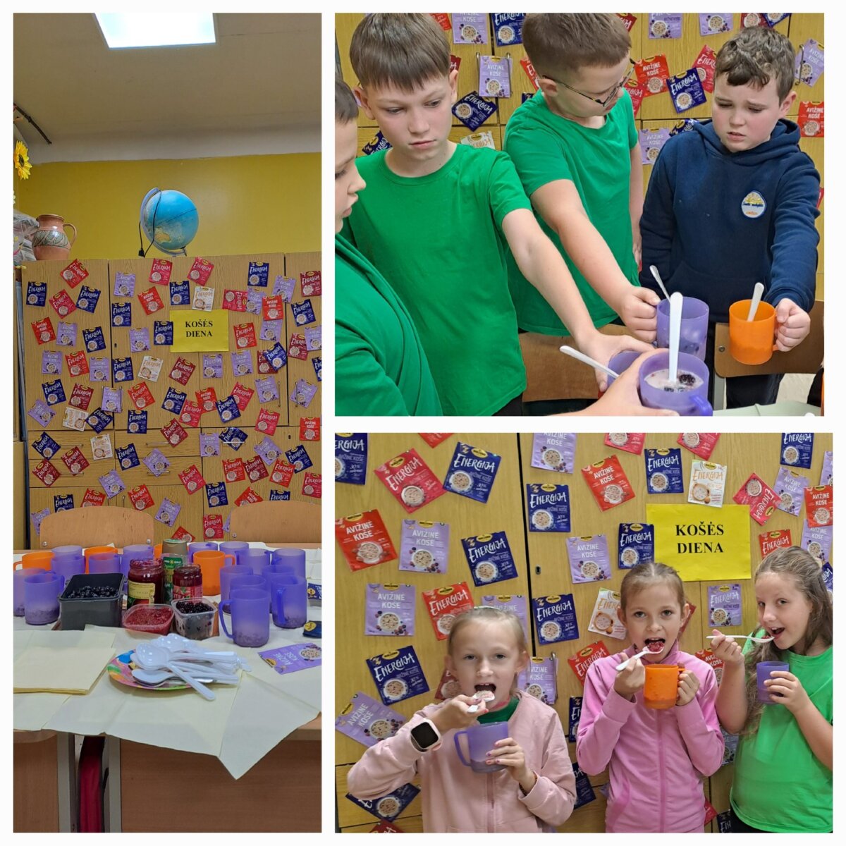 Spalio 10 d., mokiniai paminėjo Pasaulinės košės dieną, kurios tikslas – skatinti vaikų sveikos mitybos įpročius ir akcentuoti košės pusryčių naudą žmogui. Pusryčiai – ypač svarbus dienos valgymas, jei jis praleidžiamas, po pietų vaikas jaučiasi praradęs energiją, todėl būtina valgyti maistingus pusryčius, pavyzdžiui, įvairias avižų, grikių ar kitas košes. Maistingi pusryčiai padeda palaikyti energiją, todėl vaikams lengviau mokytis, susikaupti. Įpročius keisti jiems įsisenėjus labai sunku, todėl juos formuoti reikia nuo mažens.