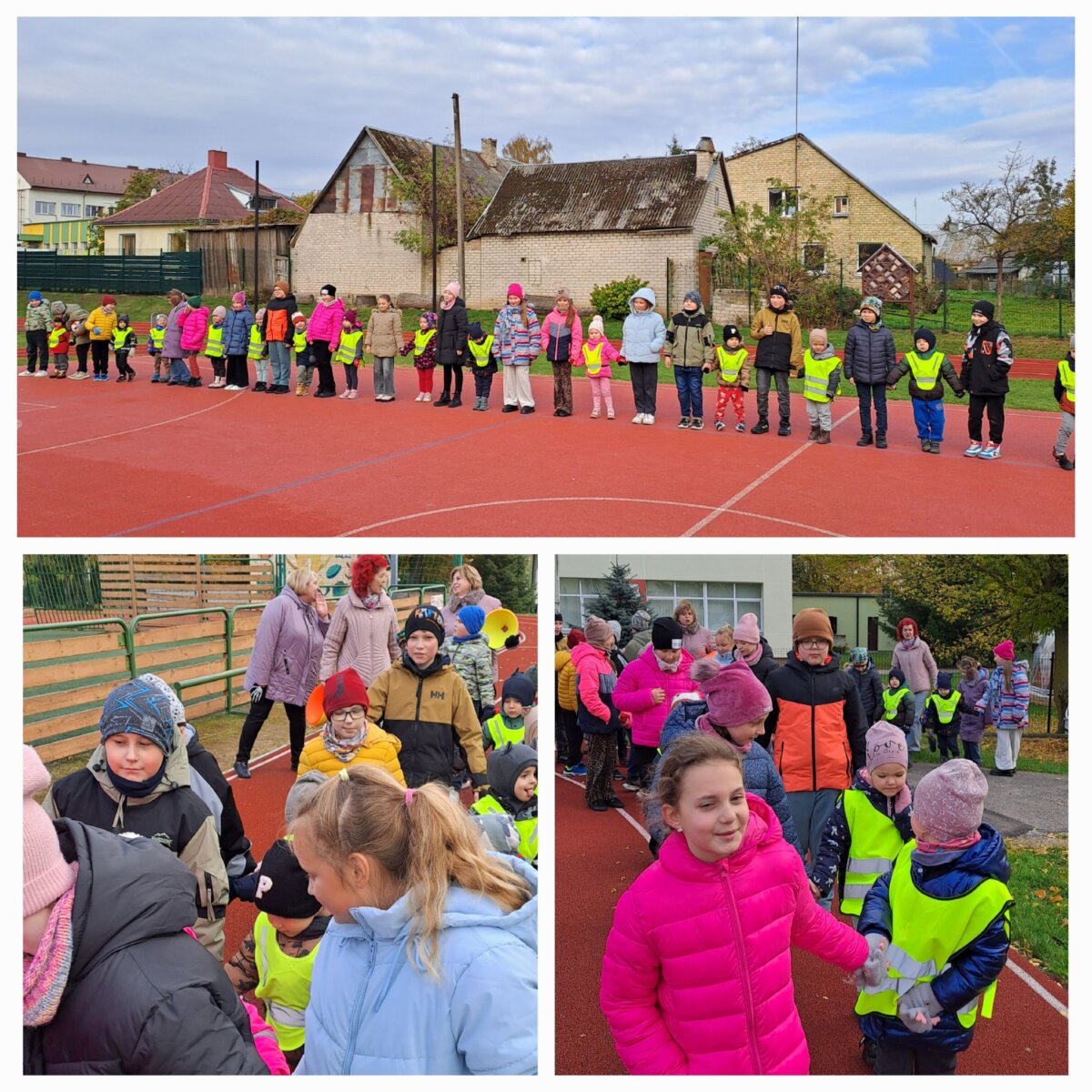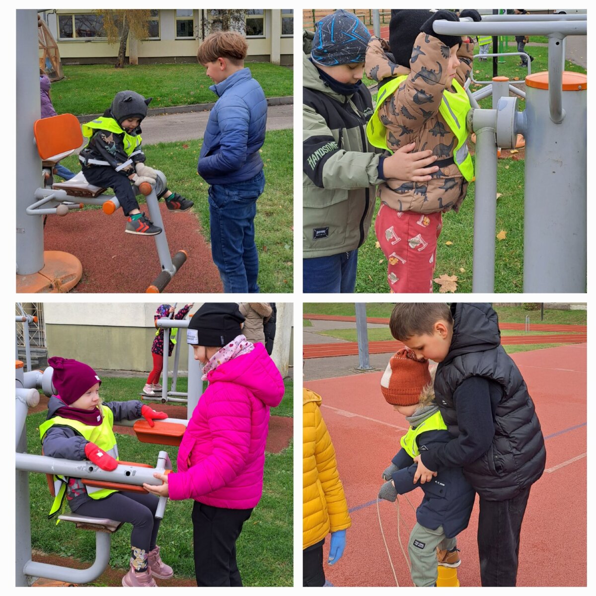Šiandien mokyklos aikštyne lankėsi „Saulutės“ darželio „ Ančiukų“ grupės vaikučiai su auklėtoja Daiva Katiliavaite. Juos pasitiko ir kartu sportavo 3B klasės mokiniai. Trečiokai labai atsakingai ir dėmesingai rūpinosi mažaisiais draugais. Kartu mokėsi atlikti sportines rungtis, saugojo ir globojo juos. Vėliau darželinukus palydėjo į darželį ir apžiūrėjo jų naujas lauko erdves. Užsimezgė graži draugystė.