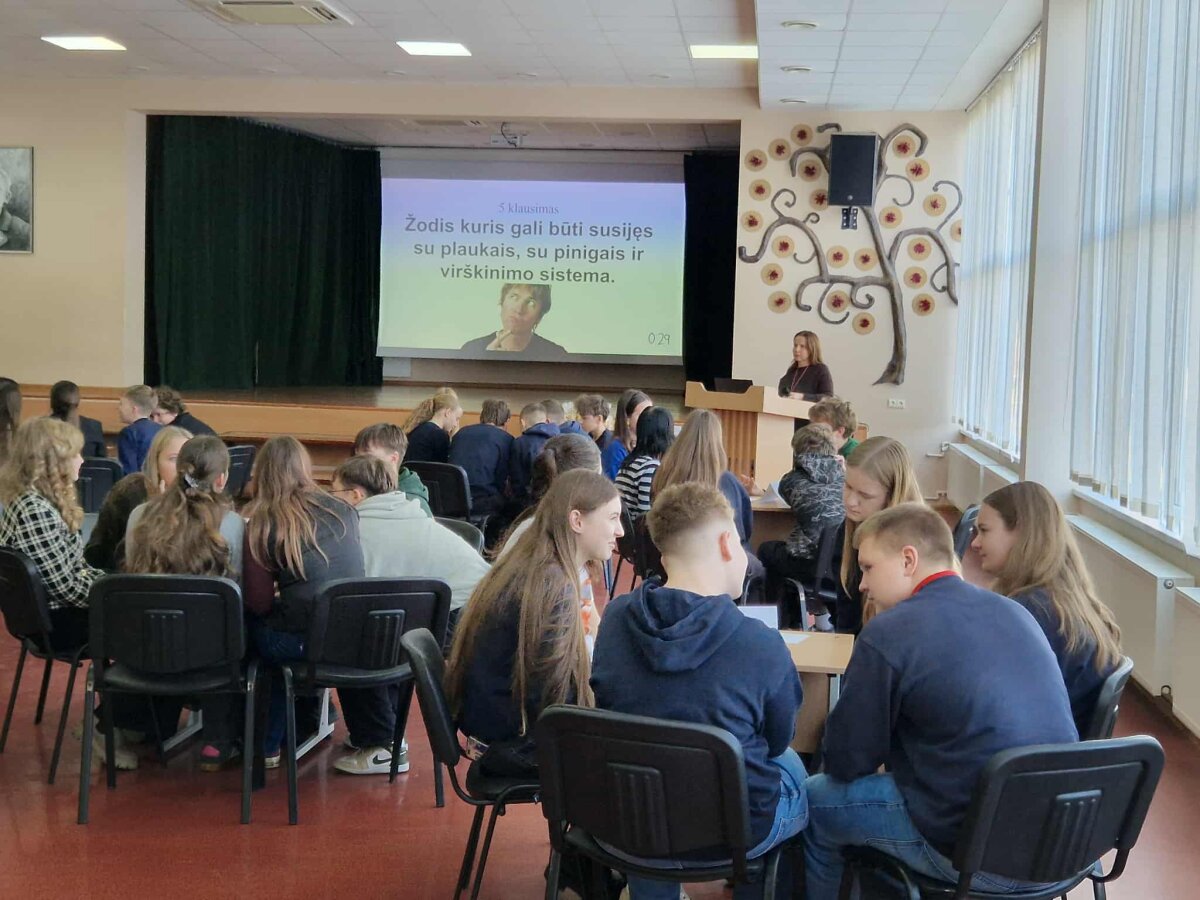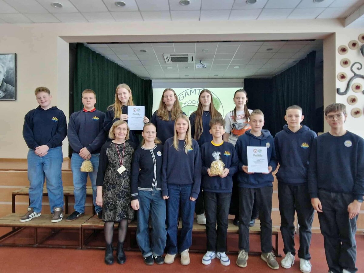 Mūsų mokyklos komanda, kurią sudarė Ditė Butkutė, Ema Jankauskaitė, Joris Kubulkis, Dovydas Motuzas, Jovydas Vilčiauskas ir Klaidas Sakalauskas, užėmė trečiąją vietą.