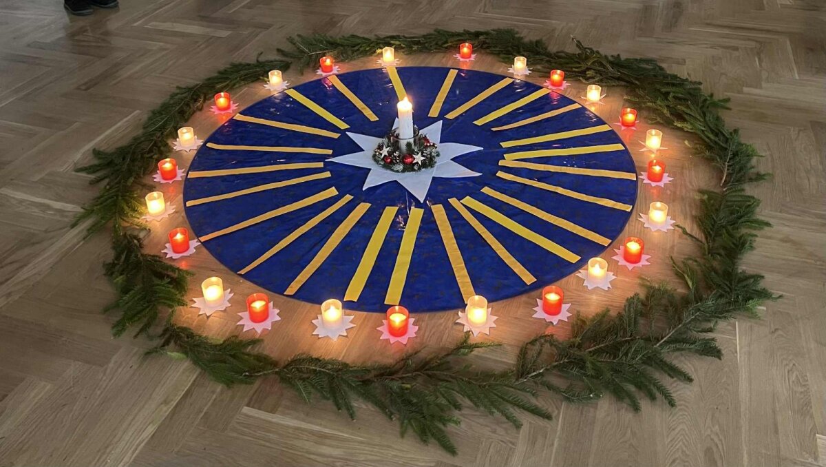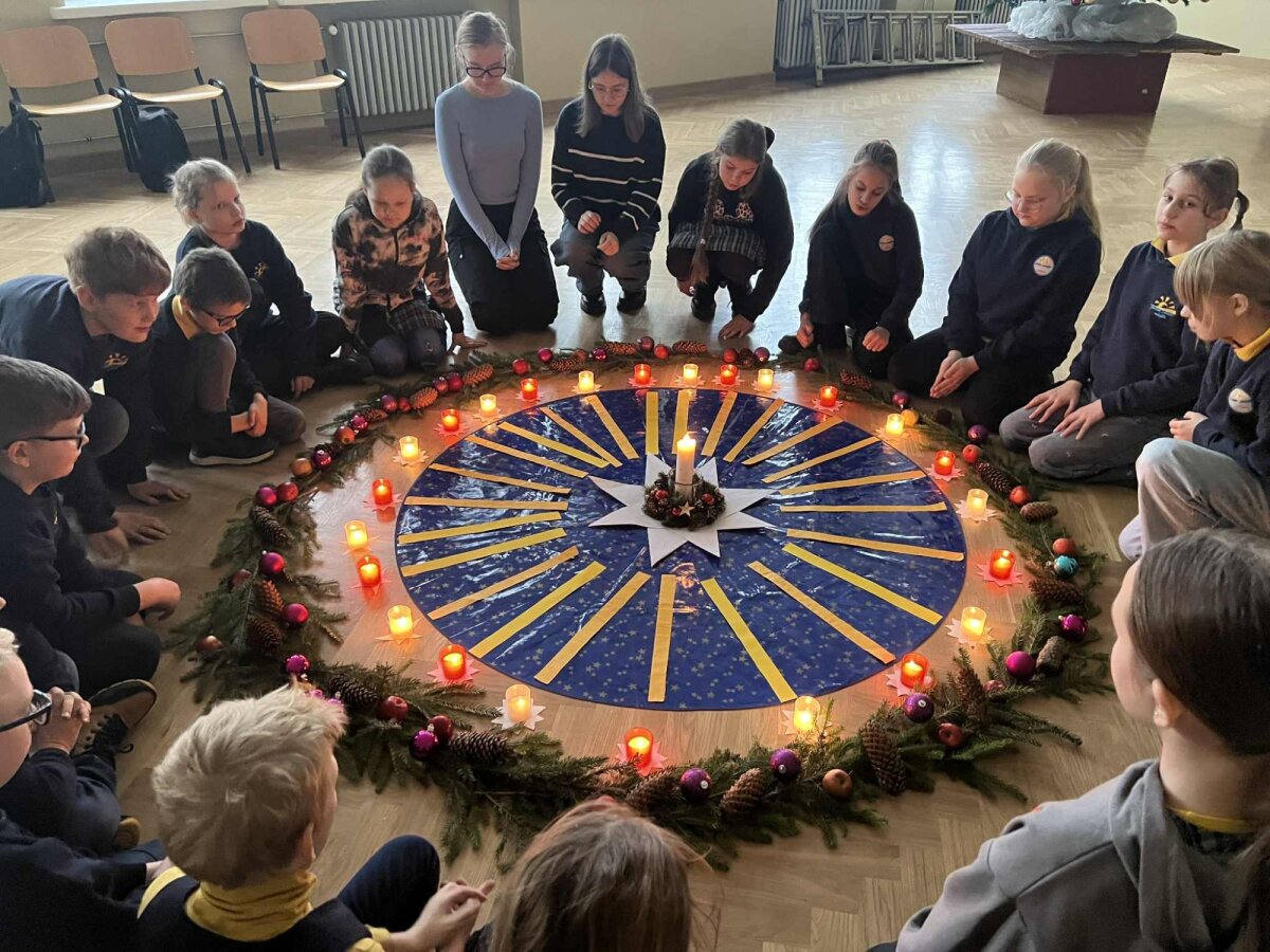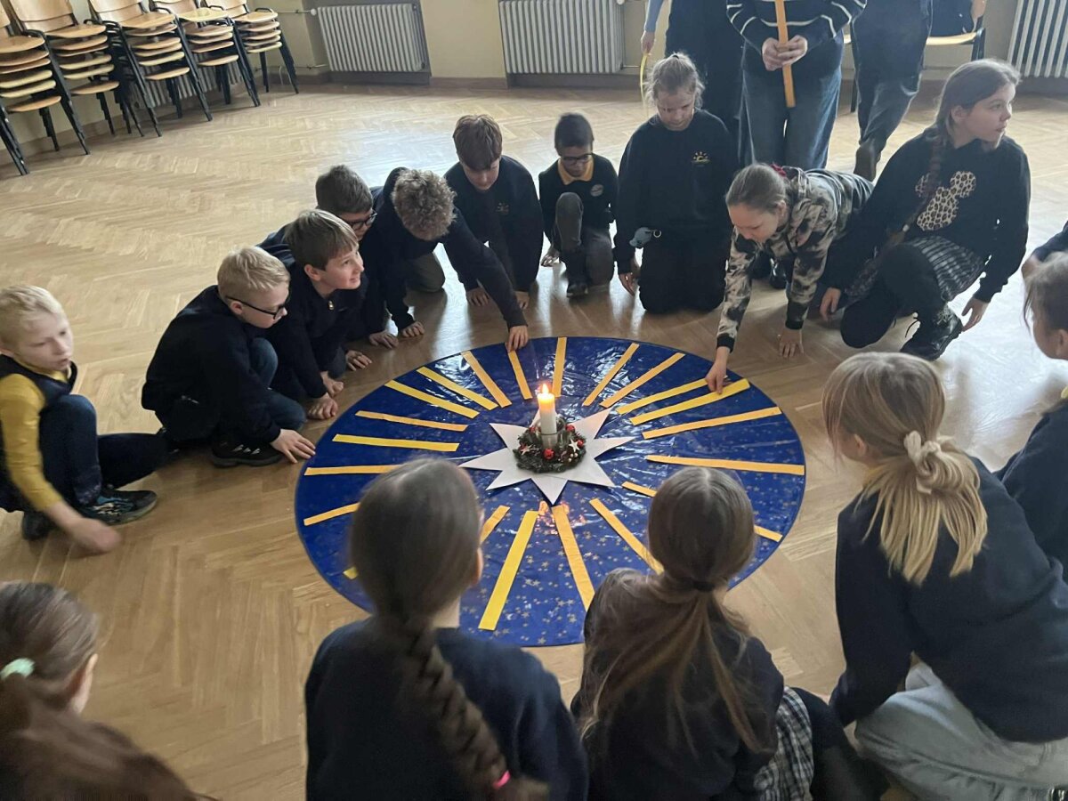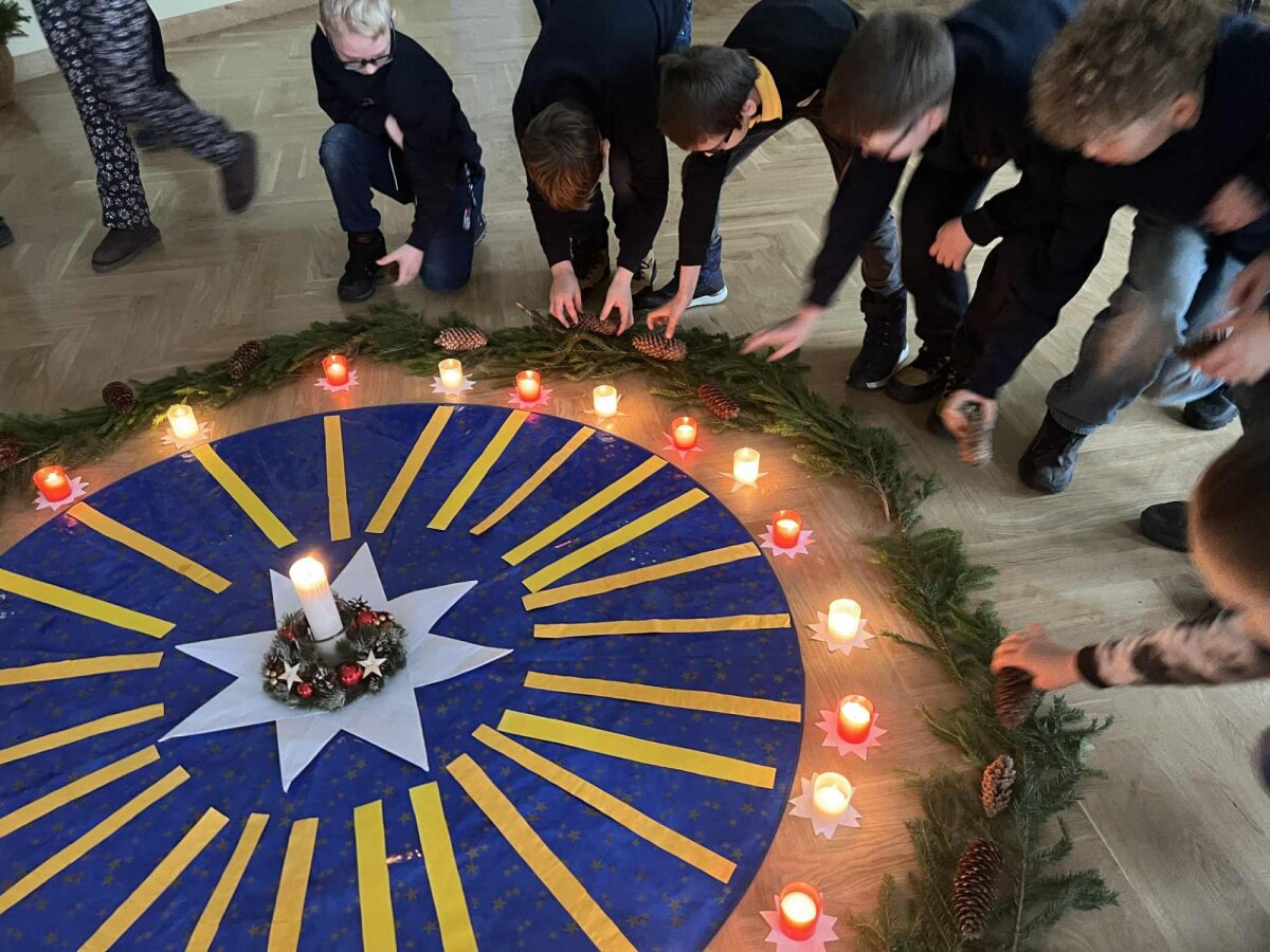 Tikybos mokytoja Inga pakvietė visus trumpam sustoti, nusiraminti ir pagalvoti, ką kiekvienam reiškia laukimas. Ji pasakojo apie simbolinę kiekvienos į vainiką įpinamos detalės prasmę – apie tai, kaip paprasti daiktai gali kalbėti apie viltį, šviesą, gerumą ir bendrystę.
