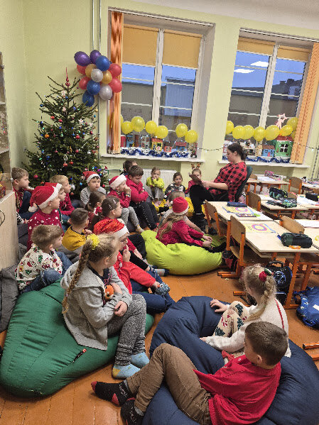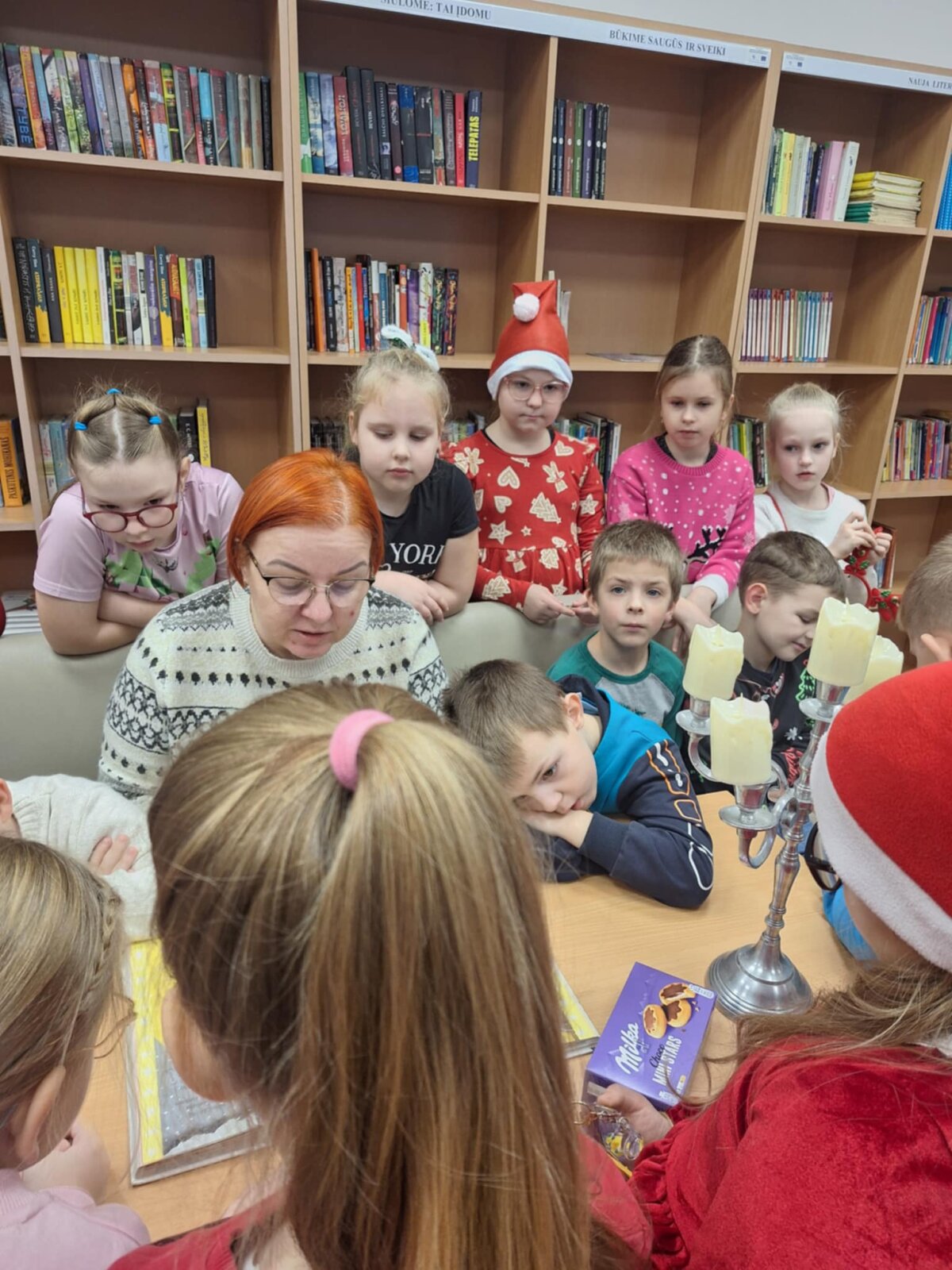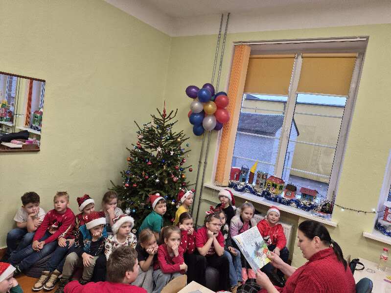 1B klasės mokiniai visą paskutinę prieššventinę savaitę kasdien klausėsi skaitomų Kalėdinių pasakų. Pasakas skaitė bibliotekininkė, Romenos, Luko mamos. Vaikai ne tik klausėsi pasakų, bet ir dalindavosi savo įspūdžiais, aptardavo pasakų veikėjus, nuotaikas, Kalėdinius stebuklus. Smagu pasinerti į pasakų pasaulį.