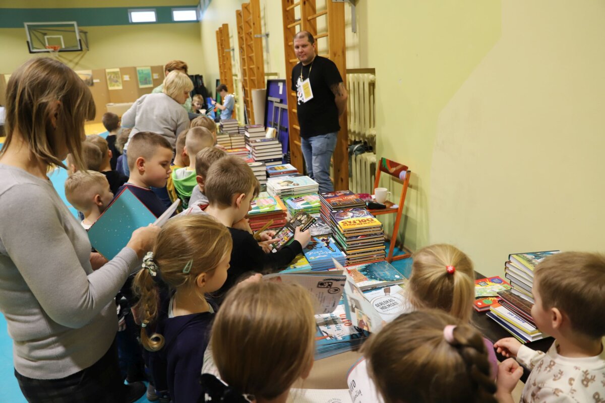 Mokykloje svečiavosi ir jaunųjų skaitytojų pamėgta leidykla „Nieko rimto“, atvežusi daug įvairiausių skaitymo knygelių.