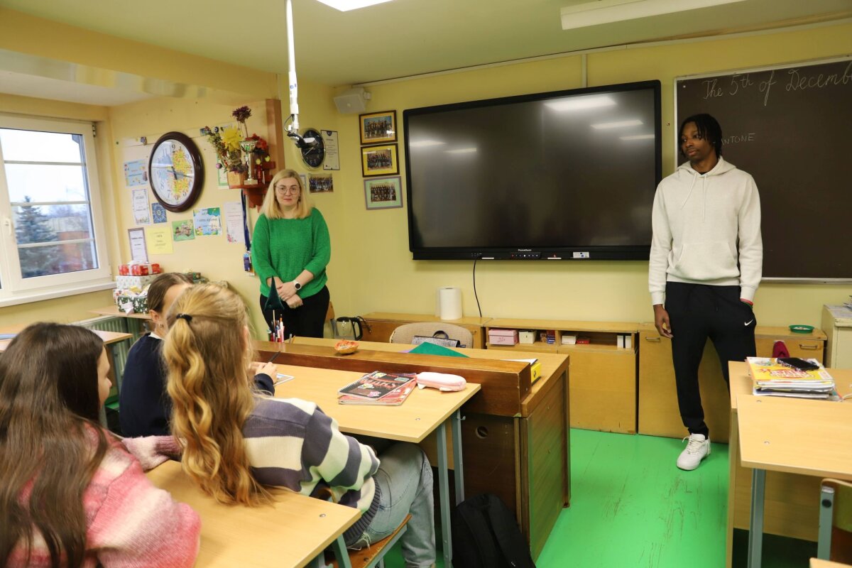 Profesinio orientavimo iniciatyvoje ,,Diena mokykloje“ dalyvavęs Joniškio ,,Aušros“ gimnazijos abiturientas, buvęs Joniškio ,,Saulės“ pagrindinės mokyklos mokinys Gustas Poilovas pirmus metus žaidžia klube ,,Delikatesas“, o sportine veikla užsiima nuo pats vaikystės. Jis kartu su pradinių klasių mokytojomis Roma Šerkšniene ir Vijole Korolkova organizavo integruotą fizinio aktyvumo ir ugdymo karjerai pamoką 3c ir 4a klasių mokiniams. Šiauliečiai Pranciškus Ručinskas ir Rokas Pupelis kartu su mokytoja Dalia Povilauskiene vedė fizinio aktyvumo pamoką 8b ir 9a klasių mokiniams. Jaunuoliai ne tik sportavo, bet ir atlikinėjo krepšininkų pateiktas sportines užduotis. Už sėkmingą jų atlikimą svečiai atsivežė ir prizų, kuriuos mokiniams įteikė penktadienio vakarą vykusių varžybų metu. Mokytoja Asta Valienė savo pamokoje sulaukė svečio net iš Amerikos. Šiuo metu Joniškyje gyvenantis sportininkas Antone Lavell Baker vedė anglų kalbos pamoką daliai 8a klasei. Organizuoto interviu metu mokiniai uždavinėjo svečiui klausimus apie sportininko karjerą, mokslą Amerikoje, sportininkų mitybos įpročius, laisvalaikį, pomėgius. Visi į mokyklą atvykę krepšininkai ir klubo ,,Delikatesas“ viešųjų ryšių specialistė Aira Pečkienė, kuriai teko mokytis ,,Saulės“ pagrindinėje mokykloje, vedė klasės valandėlę kartu su mokytoja Daiva Lukiene 5b klasės mokiniams.