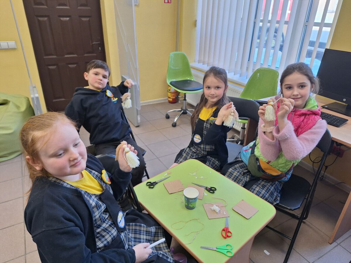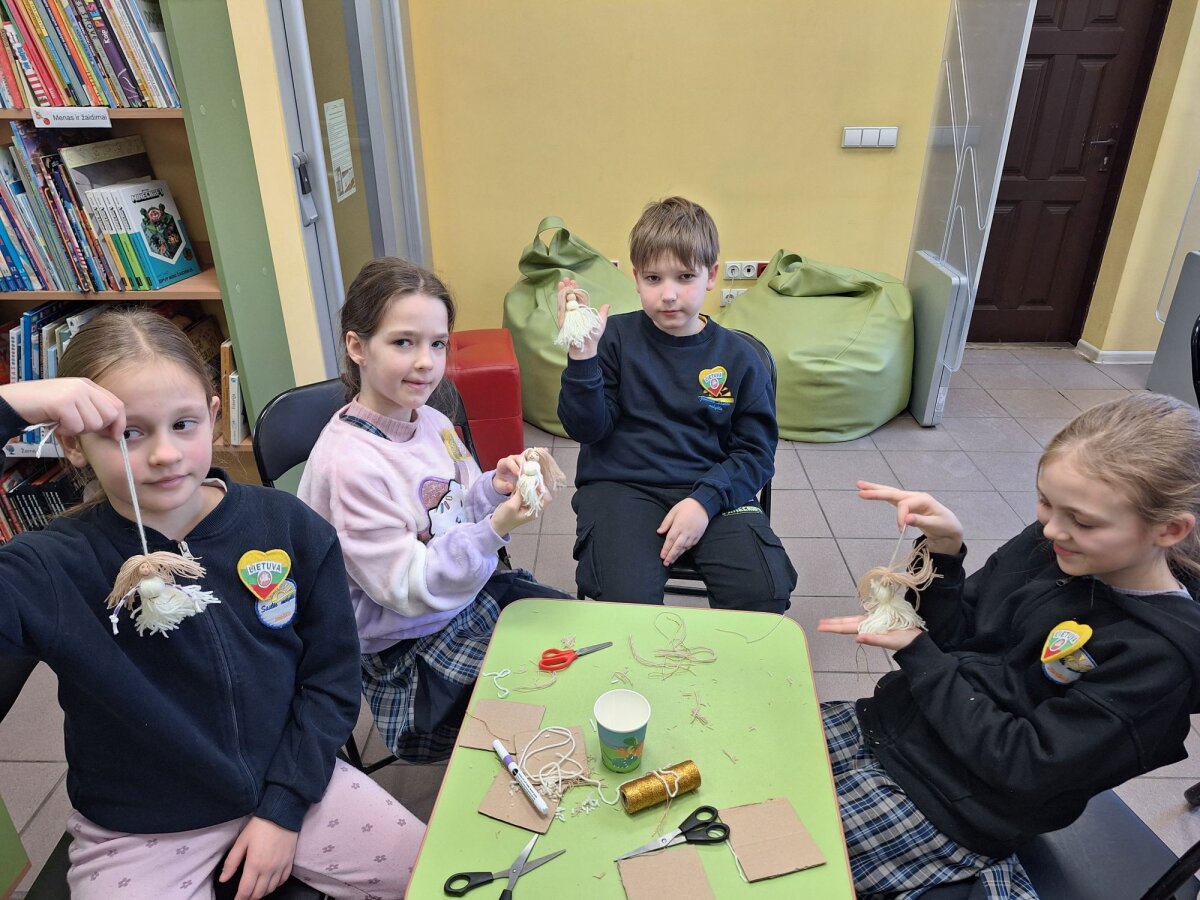 Po viktorinos, pasidarė angeliukus iš siūlų. Mokiniai su didžiule meile ir noru juos kūrė. Kiekvieno angeliukas savitas, originalus ir pačiam brangus. Buvo gražu žiūrėti kaip atsakingai, noriai ir kruopščiai juos kūrė.