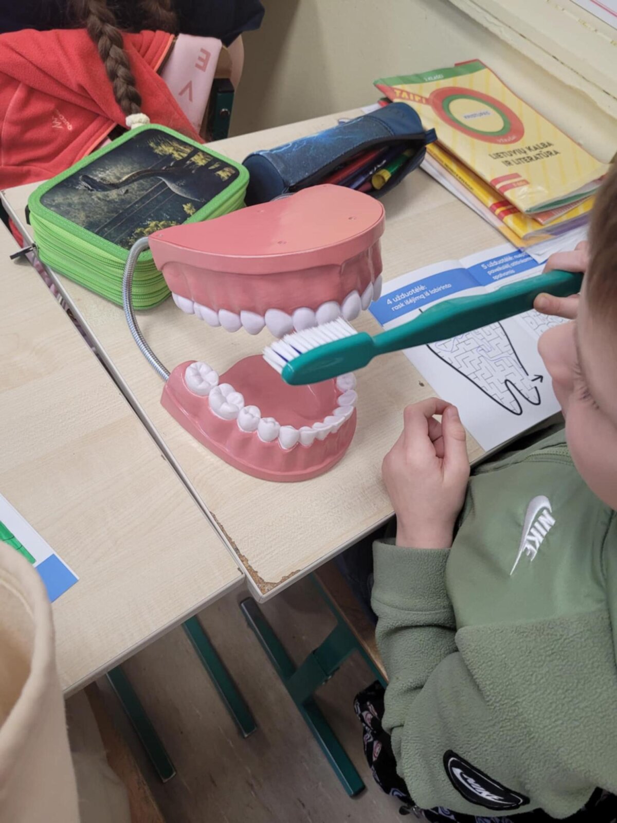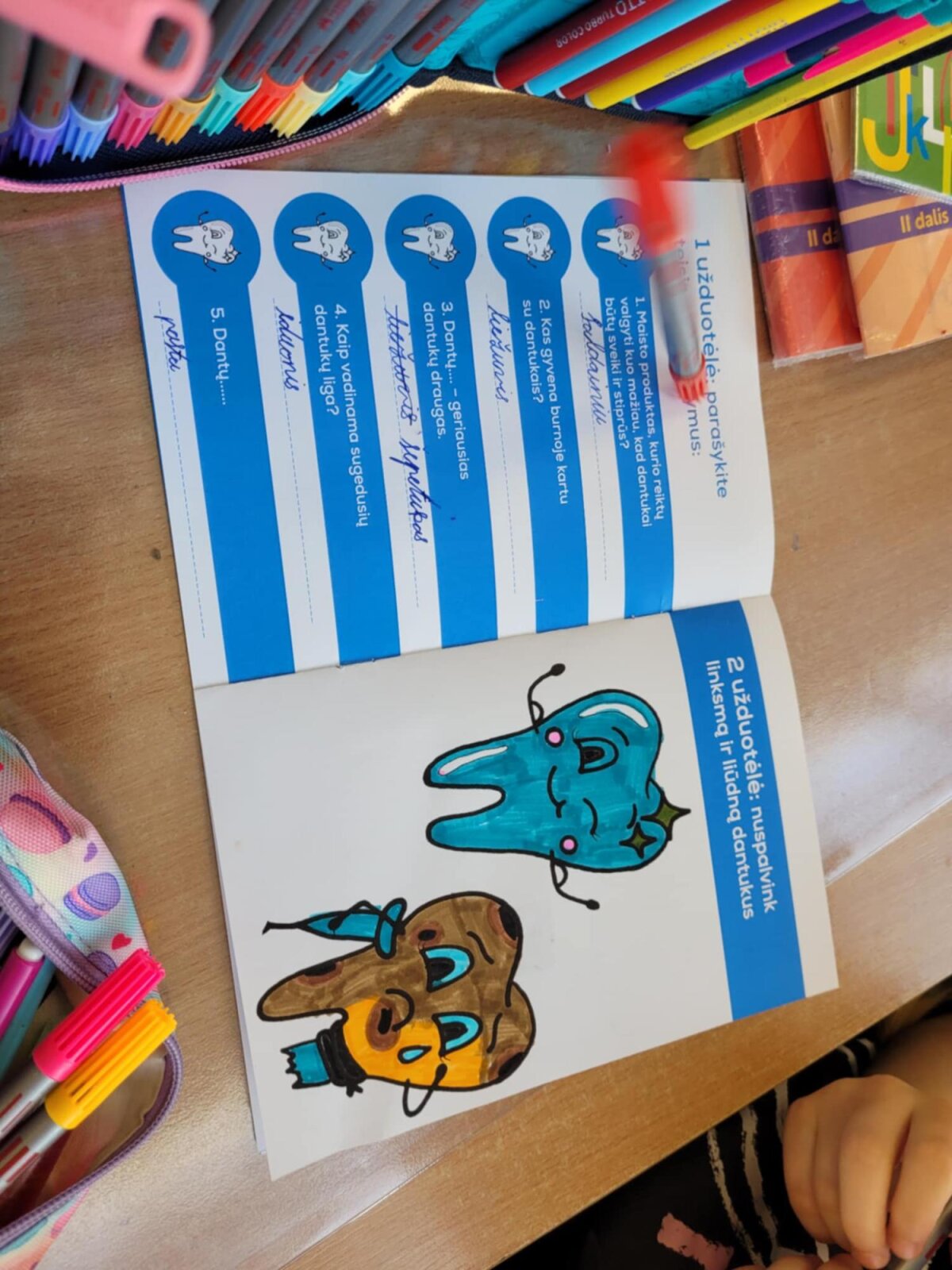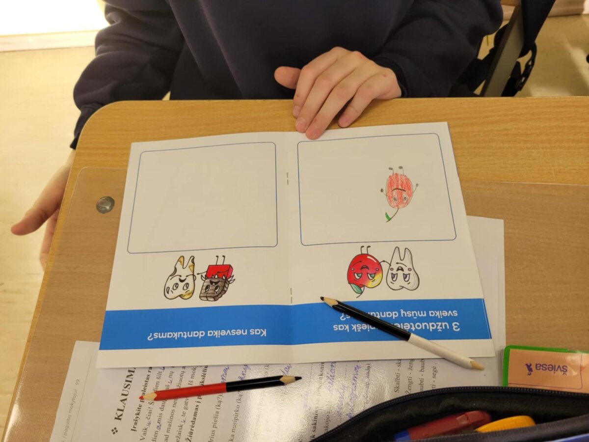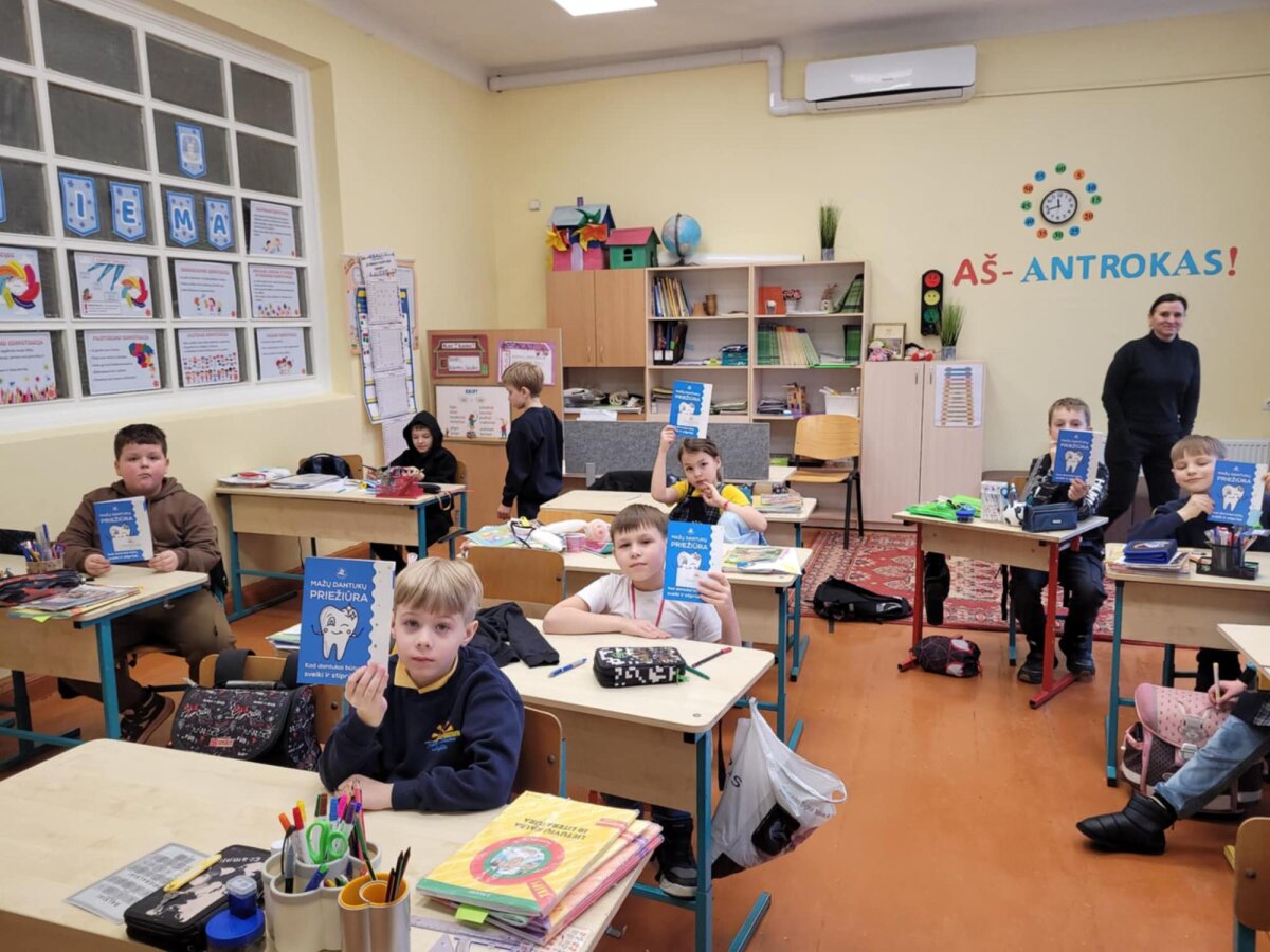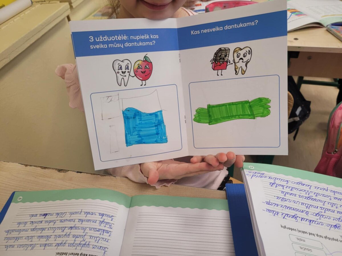 Sveikatos specialistė Ramunė su 2A, 2B ir 2C klasių mokiniais kalbėjosi apie dantukų priežiūrą. Aptarė sveiką ir kenkiantį jiems maistą, aiškinosi, kokią daržovę labiausiai mėgsta dantukai ir kuo jj prisideda prie jų švaros? Kodėl net ir dantukams reikia vandens, bei kam reikalingos seilės? Naudodami dantų maketą rodė, kaip valo savo dantukus. Dovanų mokinukai gavo Joniškio sveikatos biuro knygutes „Mažų dantukų priežiūta“.