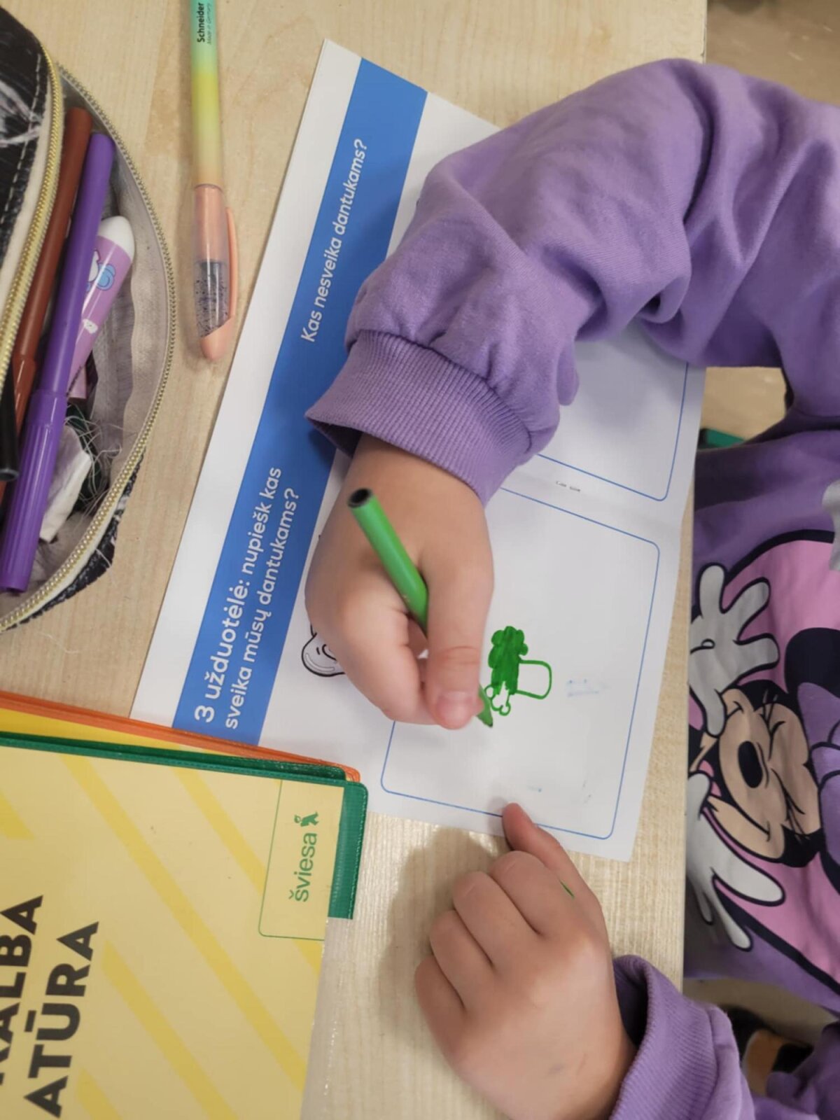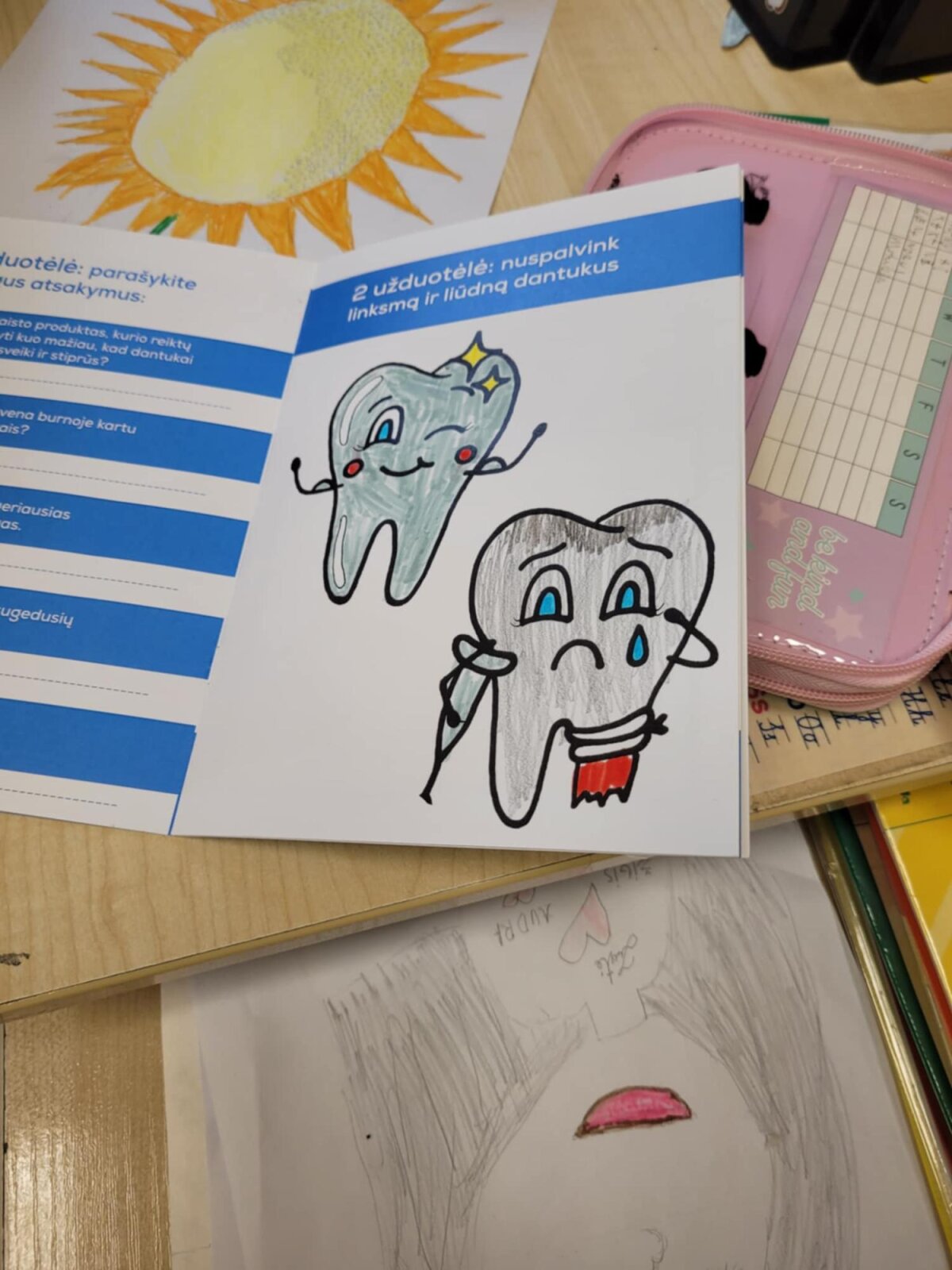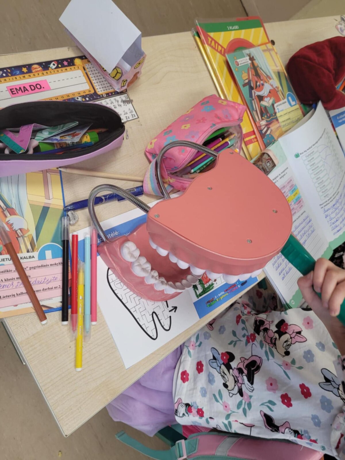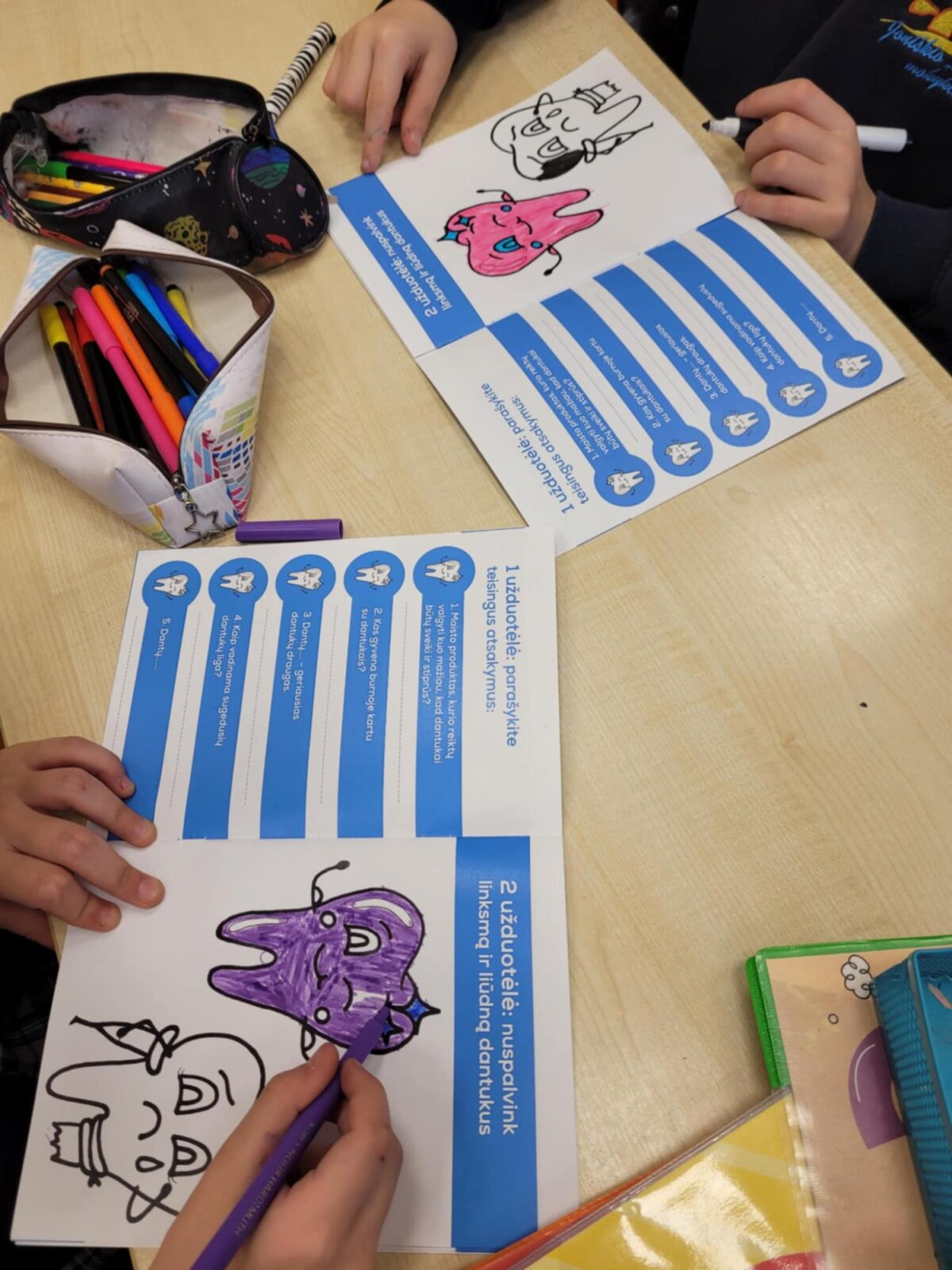 Sveikatos specialistė Ramunė su 2A, 2B ir 2C klasių mokiniais kalbėjosi apie dantukų priežiūrą. Aptarė sveiką ir kenkiantį jiems maistą, aiškinosi, kokią daržovę labiausiai mėgsta dantukai ir kuo jj prisideda prie jų švaros? Kodėl net ir dantukams reikia vandens, bei kam reikalingos seilės? Naudodami dantų maketą rodė, kaip valo savo dantukus. Dovanų mokinukai gavo Joniškio sveikatos biuro knygutes „Mažų dantukų priežiūta“.