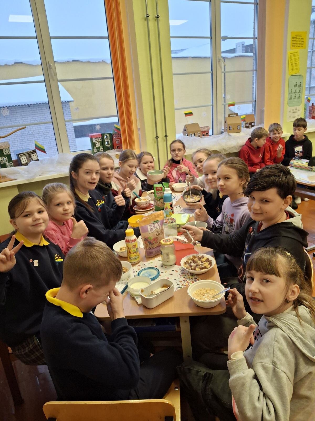 „Pusryčiaut labai svarbu – valgykim visi kartu!“ Tokiu šūkiu socialinė pedagogė Rasa ir sveikatos specialistė Ramunė, pakvietė mokyklos bendruomenę pradėti dienos darbus sveikuoliškais, skaniais bei greitai pagaminamais pusryčiais. Taigi ankstus vasario 13-osios rytas „Saulės“ mokykloje prasidėjo pusryčiais! Sveikai ir naudingai papusryčiavę, žvalūs, sotūs ir energingi „sauliukai“ kibo į dienos darbus.