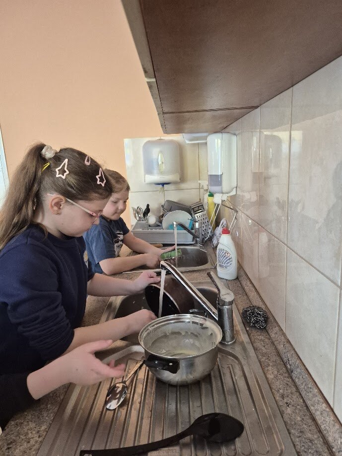 Labai buvo smagu pasiskirsčius pareigomis, pasigaminti tešlą, vynioti dar karštus vaflių lakštus. Pavalgius reikėjo susitvarkyti bei išplauti indus.