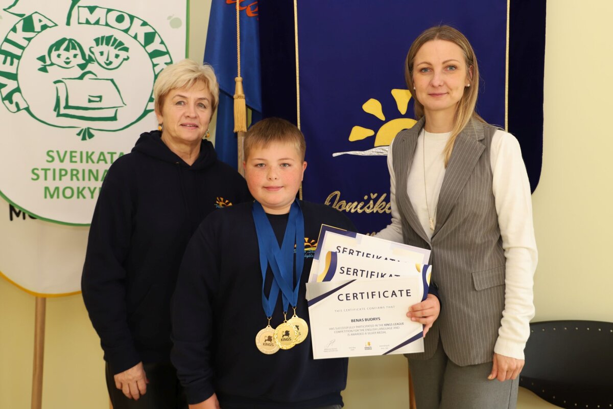 5B klasės mokinys Benas Budrys dalyvavo Tarptautinės KINGS olimpiados finale ir laimėjo net tris medalius: du aukso – lietuvių kalbos ir matematikos ir sidabro – anglų kalbos. Mokinį olimpiadai ruošė mokytoja Dalia Žilevičienė ir Vaida Mažeikienė.