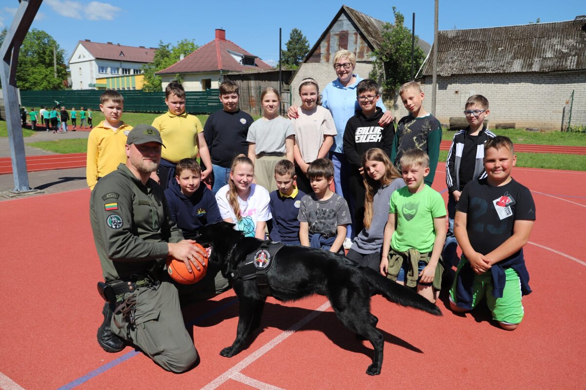 Saulėtą ir šiltą gegužės 30 dieną, „Saulės“ pagrindinės mokyklos pradinukai ir penktokai sulaukė svečių: tai Pagėgių pasienio užkardos pareigūnai Loreta, Vytautas ir kinologas Alfredas su savo augintine Šakira.