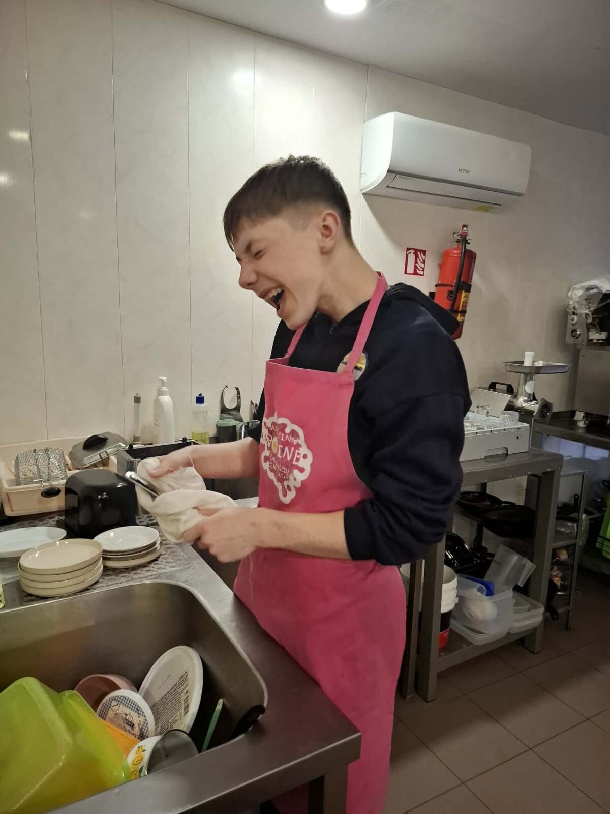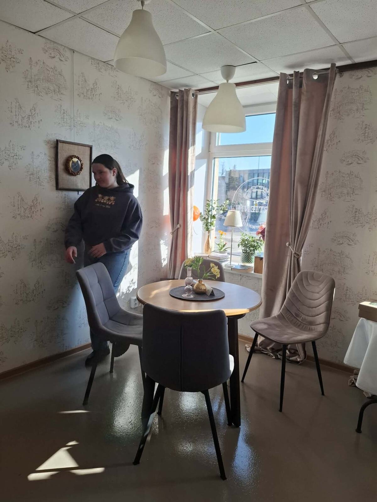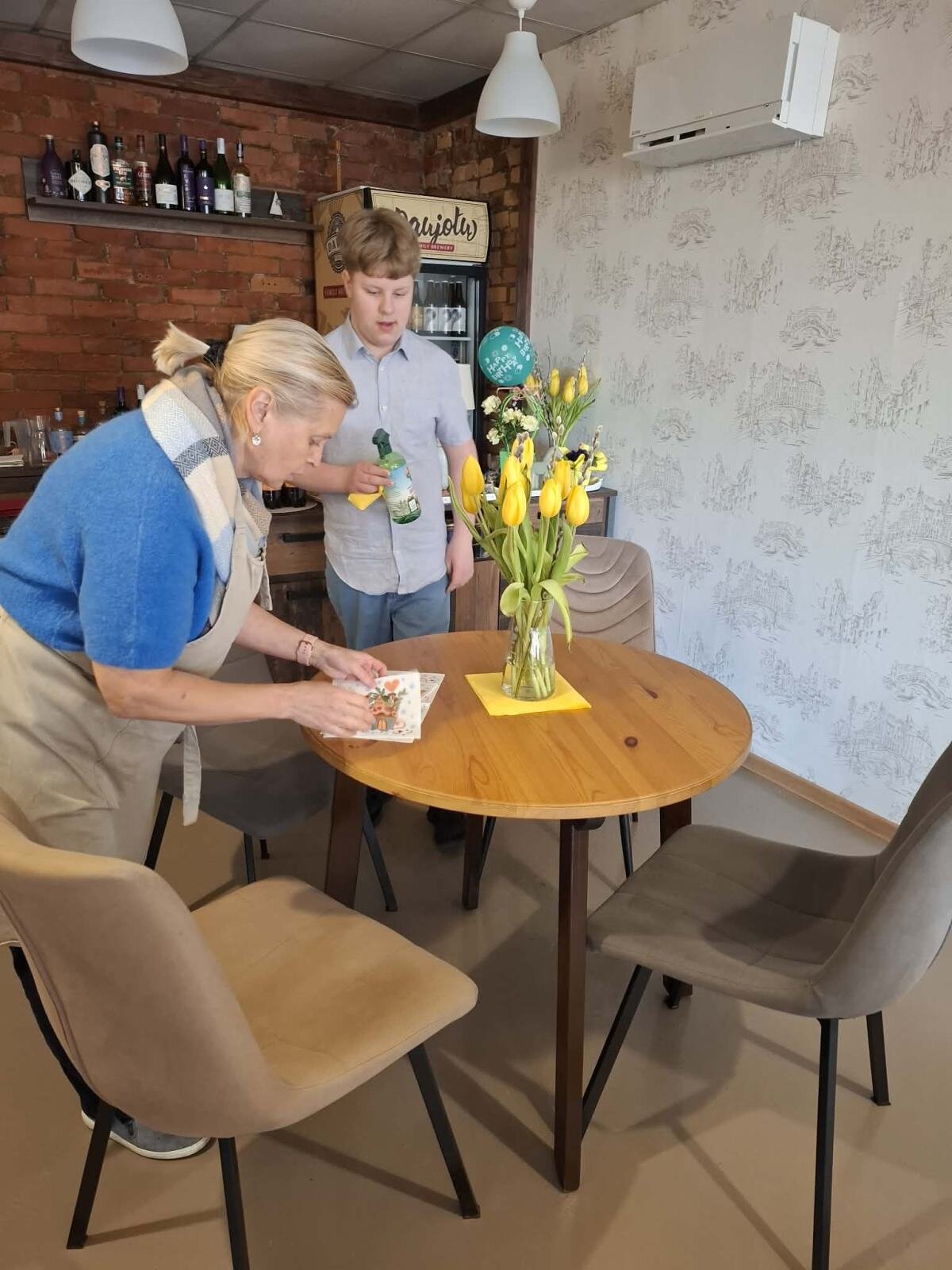 Atvykę į „Virtienių restoranėlį“, susipažinome su darbais, pasiskirstėme pareigomis ir kibome į veiklas. Vieni ruošė patalpas, kiti valė indus ir serviravo stalus, treti atliko užduotis virtuvėje. Vėliau, renkantis klientams, išmėgino savo jėgas aptarnaujant svečius bei ruošiant gaiviuosius gėrimus.