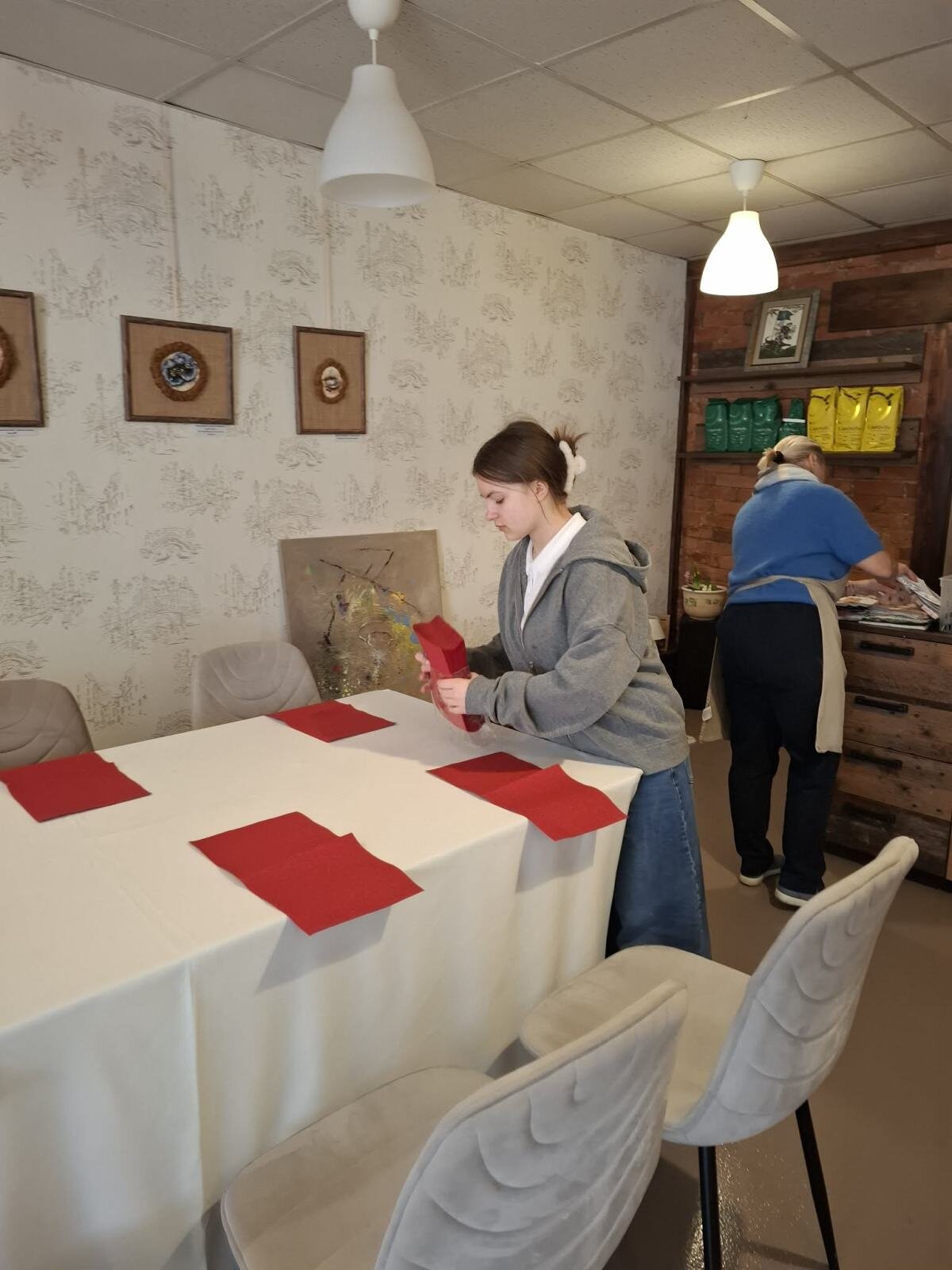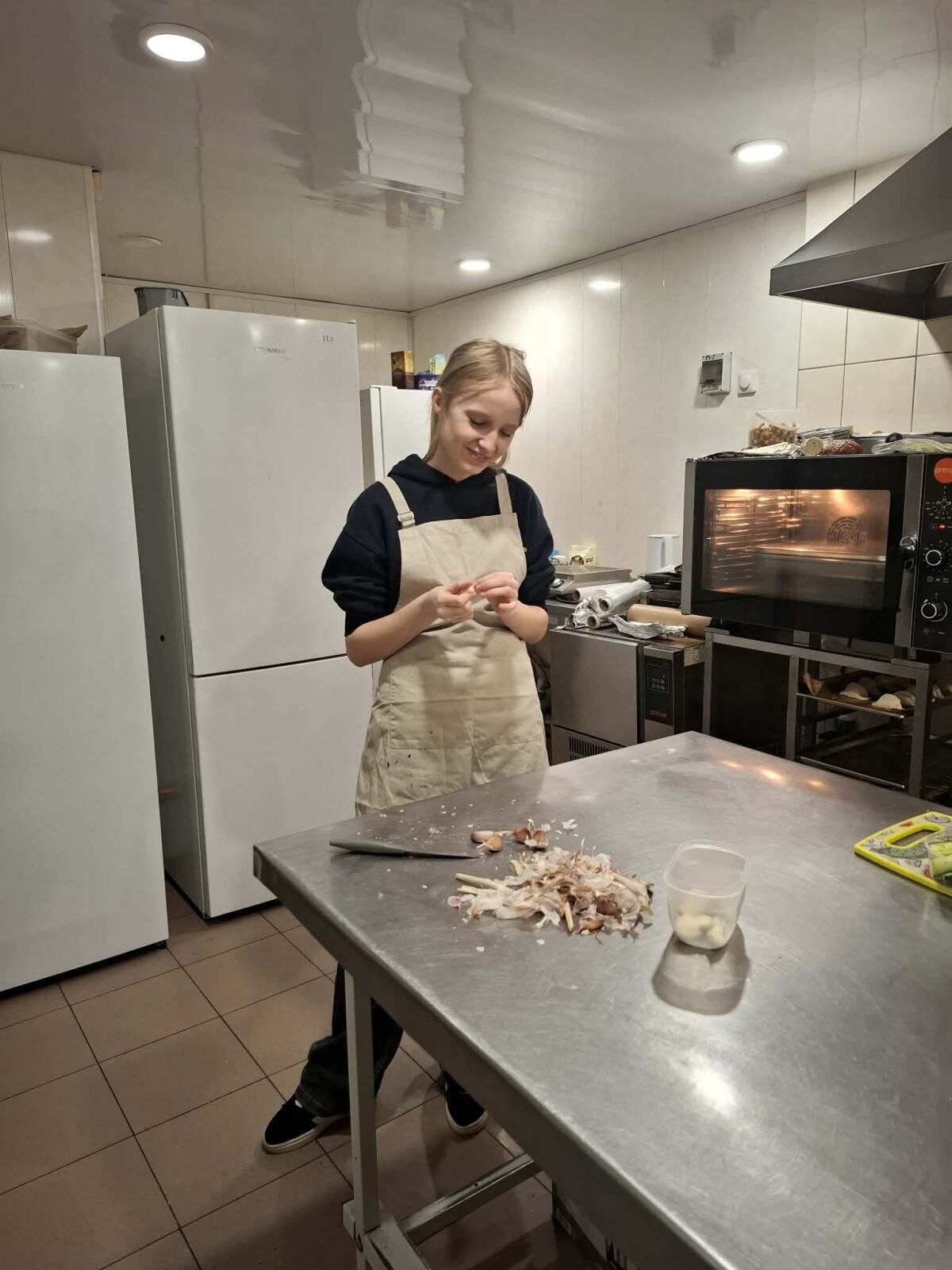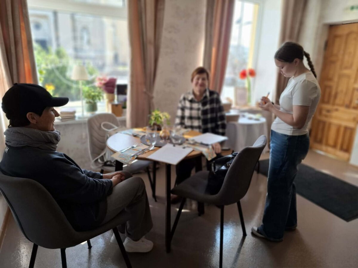 Atvykę į „Virtienių restoranėlį“, susipažinome su darbais, pasiskirstėme pareigomis ir kibome į veiklas. Vieni ruošė patalpas, kiti valė indus ir serviravo stalus, treti atliko užduotis virtuvėje. Vėliau, renkantis klientams, išmėgino savo jėgas aptarnaujant svečius bei ruošiant gaiviuosius gėrimus.